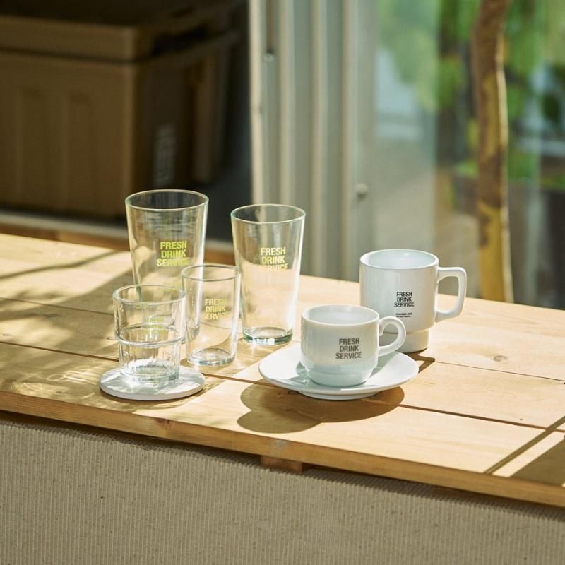 ”洋服も日用品も飲食も全て、新鮮なものを届けたい”というコンセプトを基に、グラスやマグなどのキッチンウェアを幅広くラインナップするFRESH DRINK SERVICE。それぞれのアイテムにロゴを配し、FreshServiceらしいシンプルでユニフォーム性の高いデザインに仕上げた。