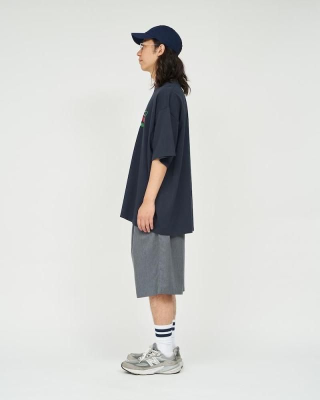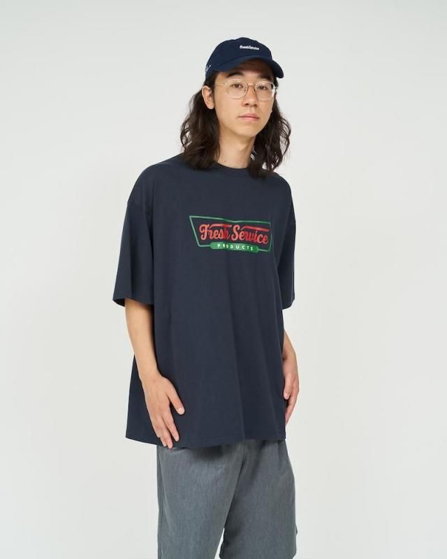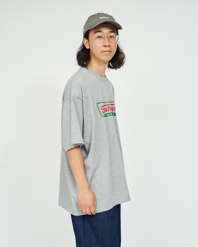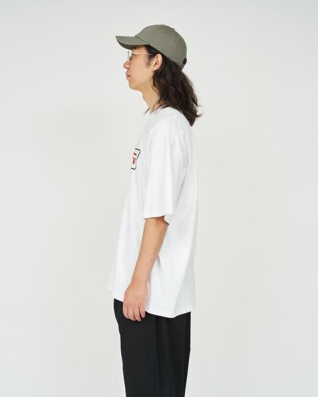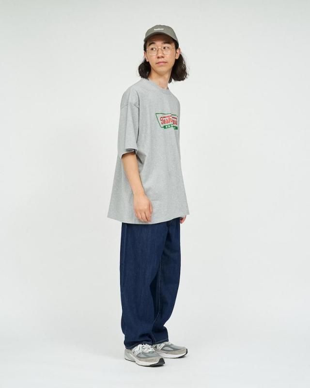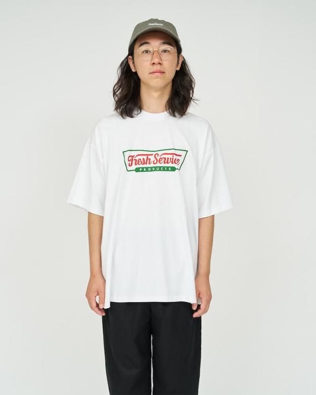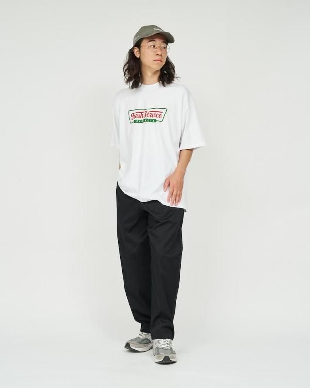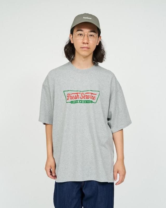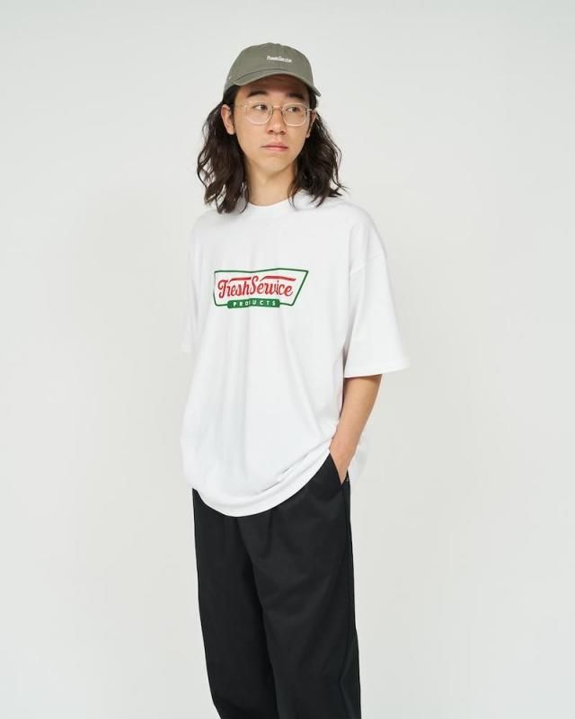 某洋菓子メーカーのロゴをモチーフにしたユニークなプリントが特徴のショートスリーブTシャツ。ボディはFreshServiceの定番のCORPORATE 2-PACK TEEを使用。ドライでざっくりした風合いのコットン生地で、脇に縫い目のない丸胴仕様。ドロップショルダーでリラックス感のあるオーバーサイズフィットで単体でも主役になる一枚です。