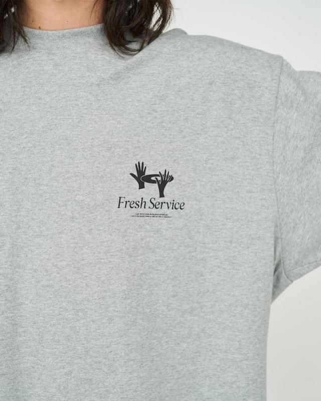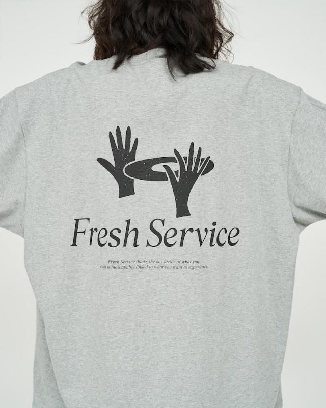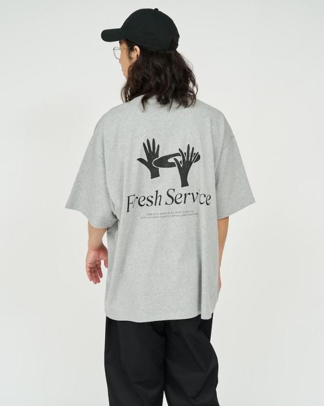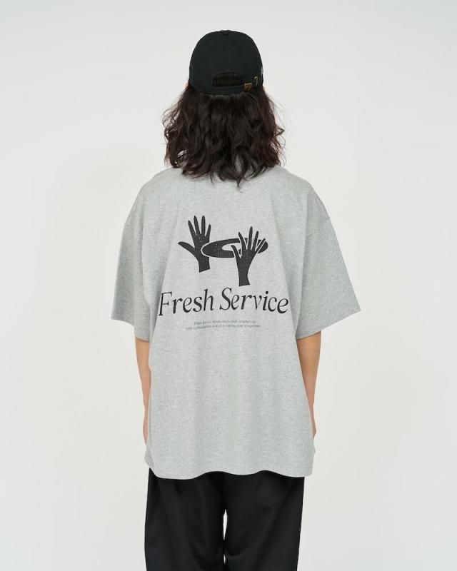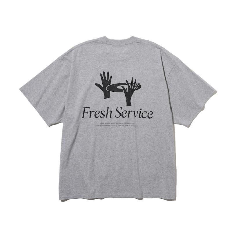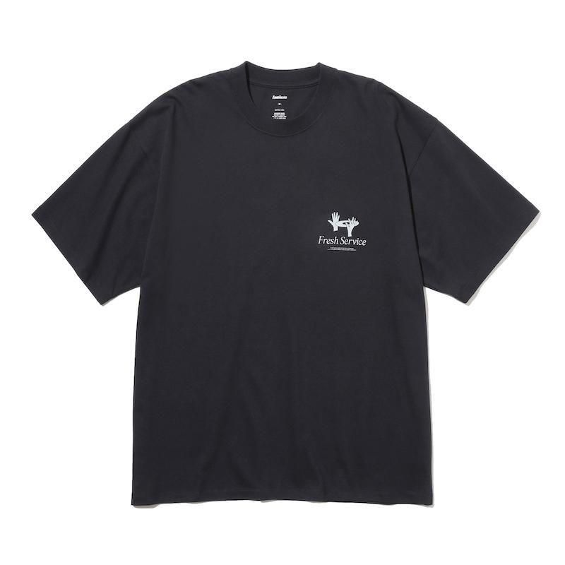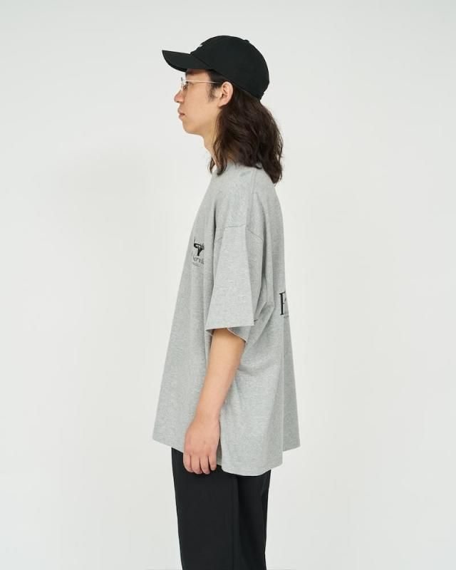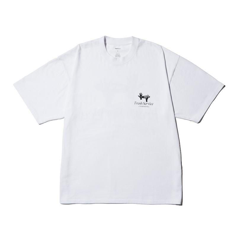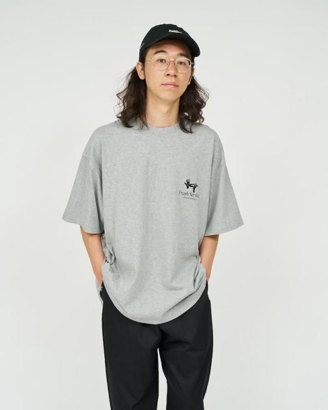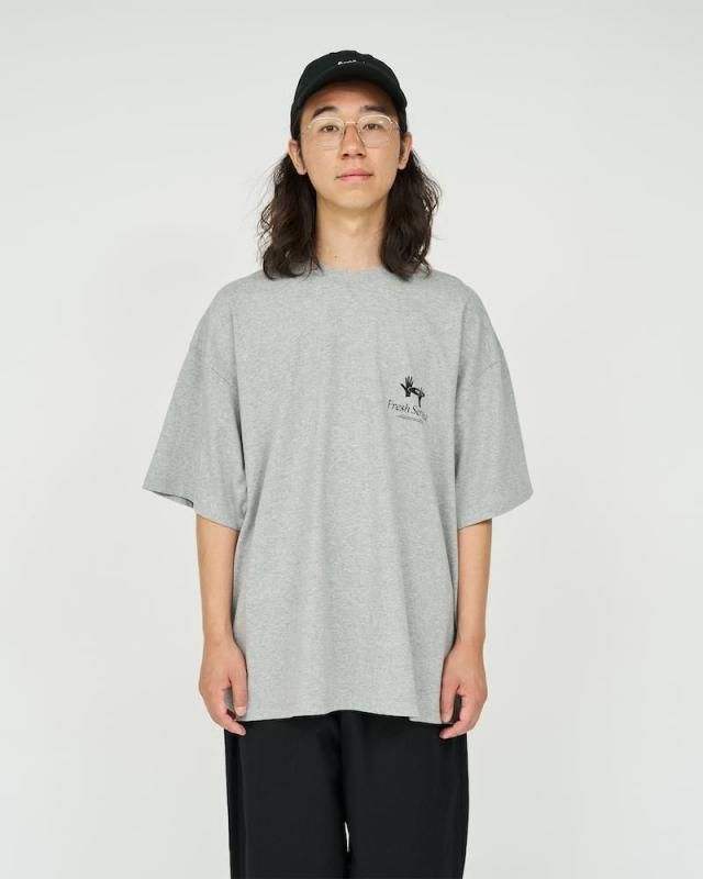 架空のコマーシャルをイメージしたグラフィックがユニークなショートスリーブTシャツ。ボディはFreshServiceの定番のCORPORATE 2-PACK TEEを使用。ドライでざっくりした風合いのコットン生地で、脇に縫い目のない丸胴仕様。ドロップショルダーでリラックス感のあるオーバーサイズフィットで単体でも主役になる一枚です。