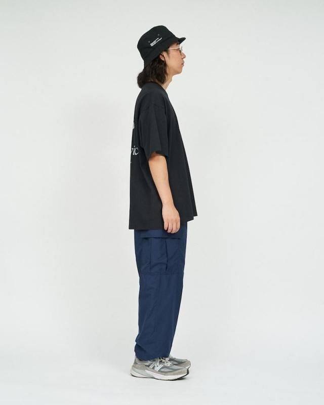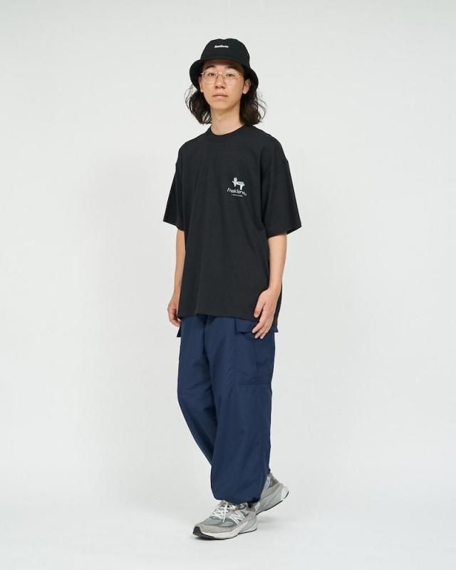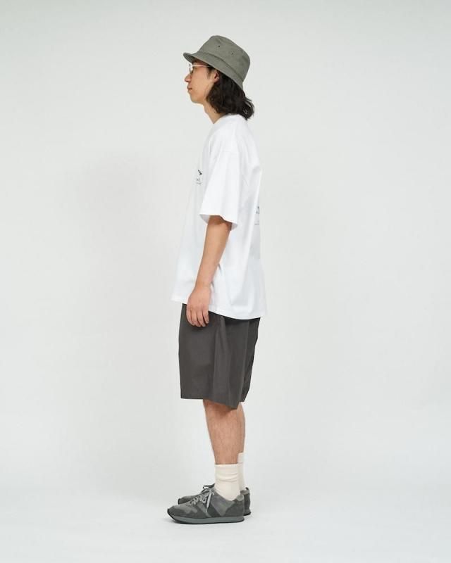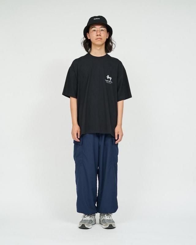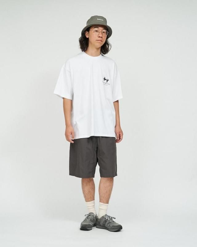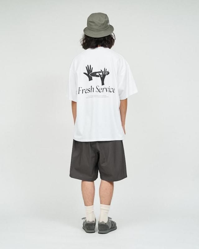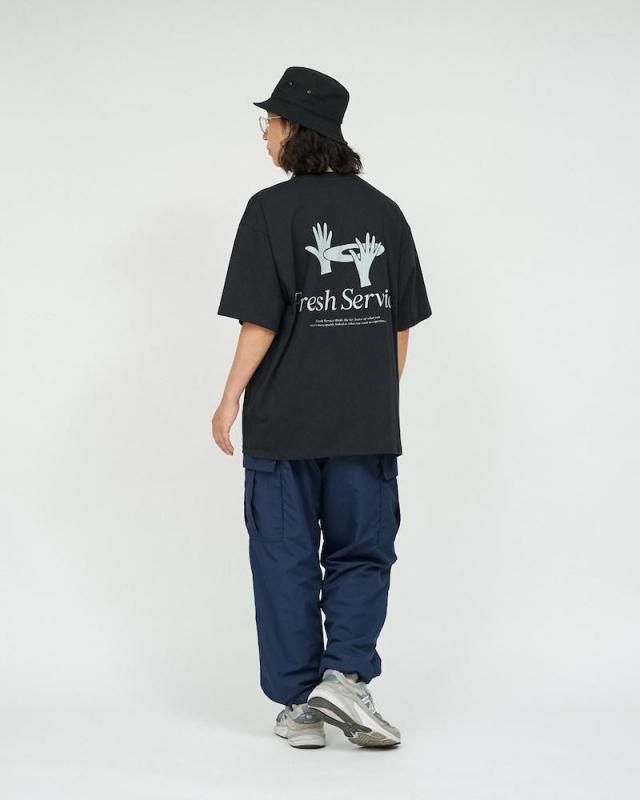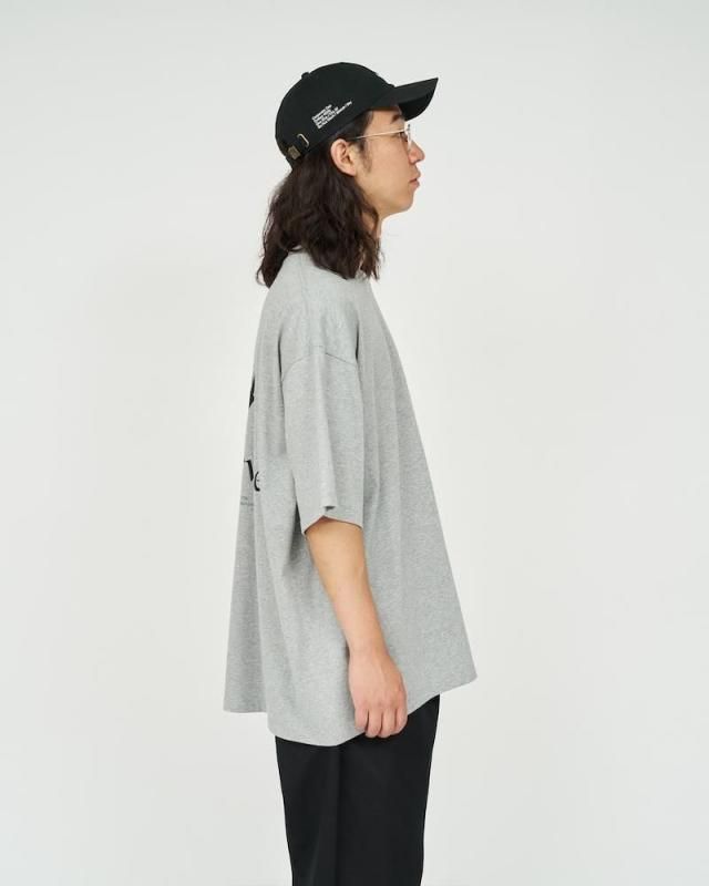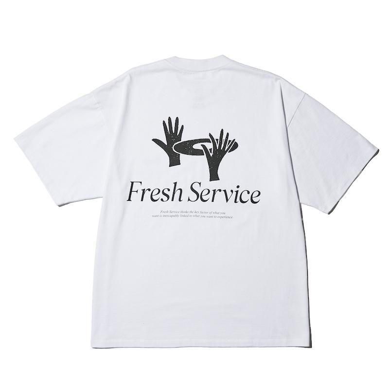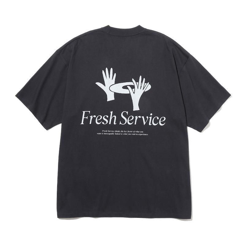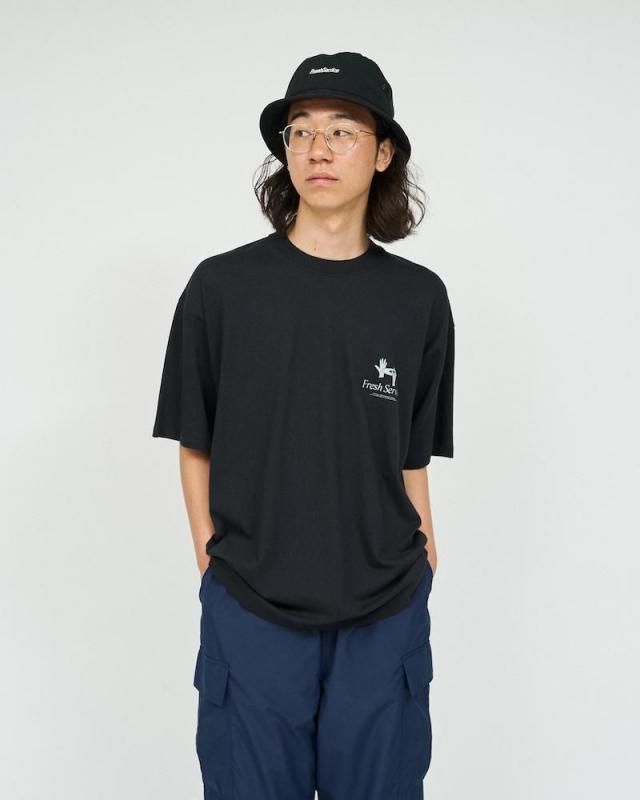 架空のコマーシャルをイメージしたグラフィックがユニークなショートスリーブTシャツ。ボディはFreshServiceの定番のCORPORATE 2-PACK TEEを使用。ドライでざっくりした風合いのコットン生地で、脇に縫い目のない丸胴仕様。ドロップショルダーでリラックス感のあるオーバーサイズフィットで単体でも主役になる一枚です。
