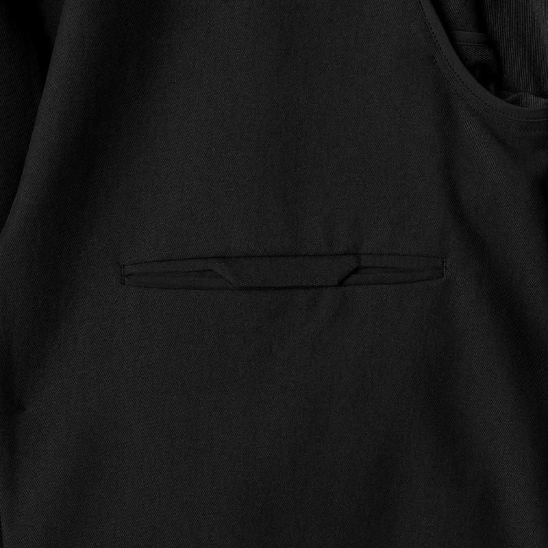 全てのポケットが脇腹ファスナー内に集約されています(ポケット数:4)。両サイドのポケット口を腕を下ろした際に見えない位置に配しセキュリティー性を向上。ファスナーポケットに旅先の現地通貨やカード、スマートフォンなど、ポケットに手をいれたまま直接アクセスできます。パスポートも収まるサイズになっているので、セキュリティーポケットとしても利用できます。