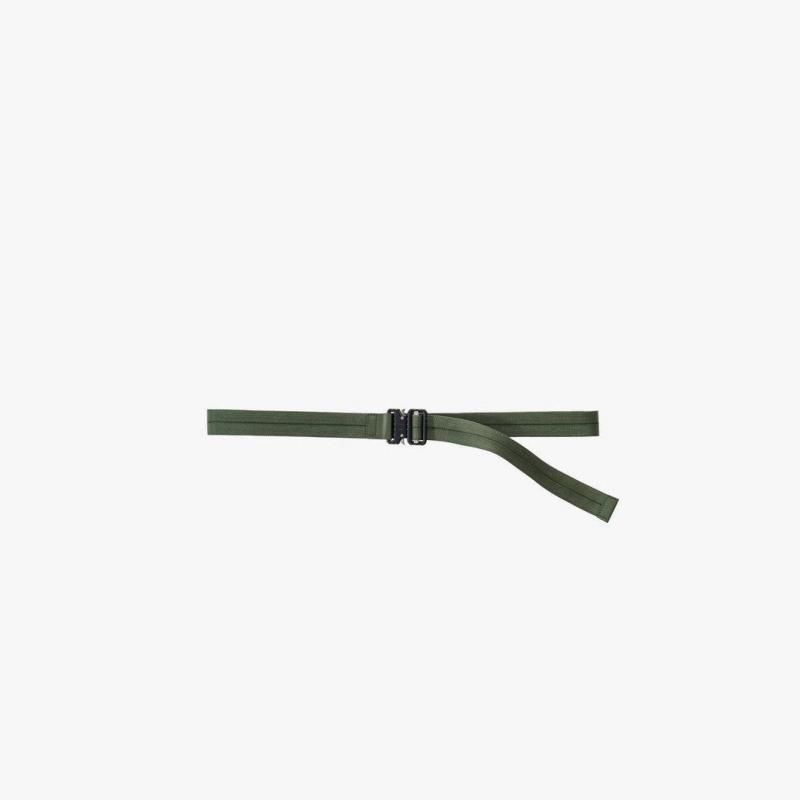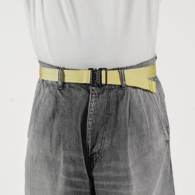 薄くしなやかでありながら強靭に織り上げたウェビングとワンタッチで脱着可能なミリタリーバックルのリガーズベルト。30mmのベルト幅にすることでボトムスを選ばずに使用できる。