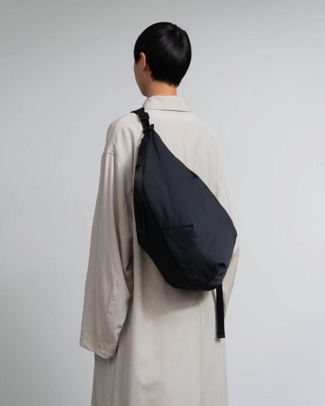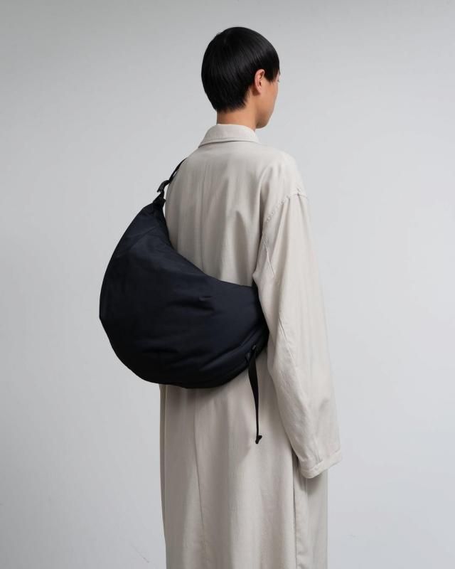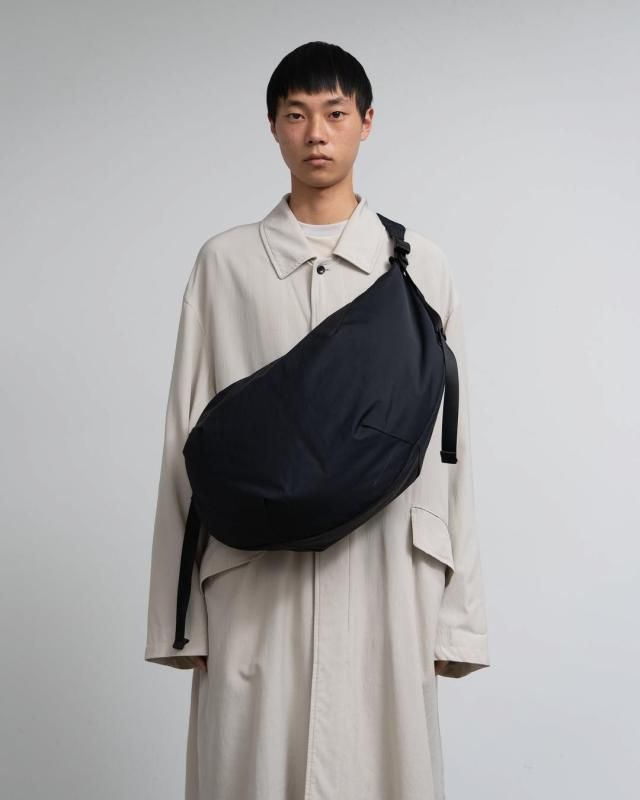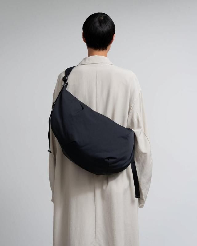 現代生活に不要なデザイン要素と無駄を排除するミニマリズムの追求をするBLANKOF(ブランコフ)。ミリタリーの堅牢性とアウトドアの実用性をベースに脚色を最小限に抑えた製品の本質に近づくデザインを提供する。今シーズンのGraphpaperとコラボレーションは三日月の造形をショルダーバッグに落とし込んだ。表生地に軽量で耐久性に優れ、撥水性にも長けたBLANKOFオリジナルナイロン素材を使用。内装にはファスナー付きの内ポケットを完備した大容量のラージサイズ