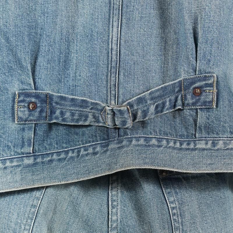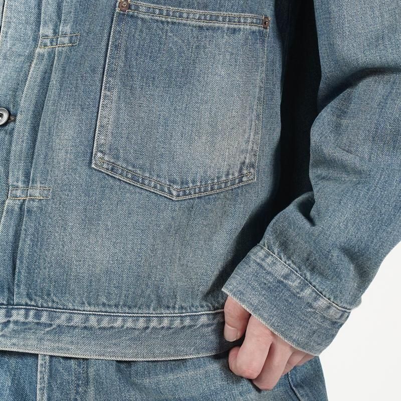 【加工】自然な経年変化を、手作業により再現 ヴィンテージを再現した加工感は、耳の色落ちまでこだわり、経年変化での退色したグレーカラーのセルビッチも特徴
