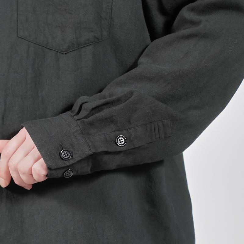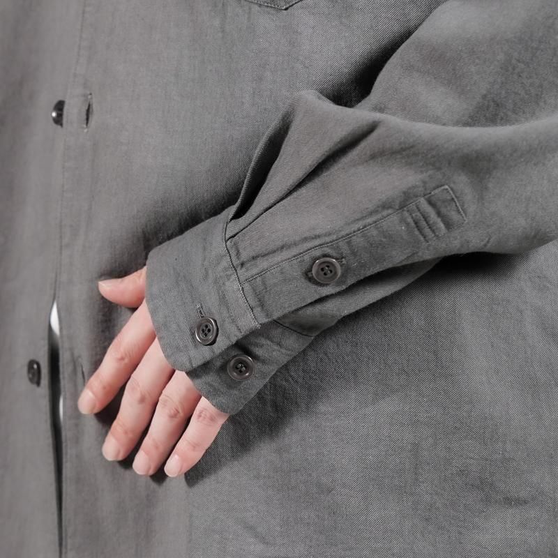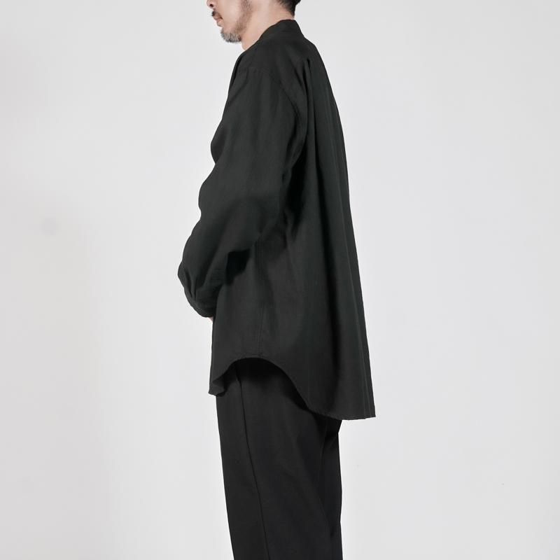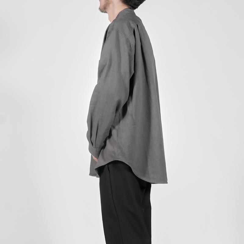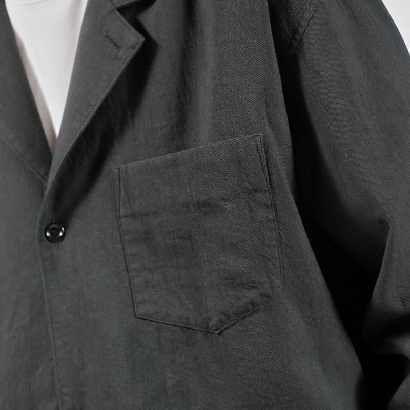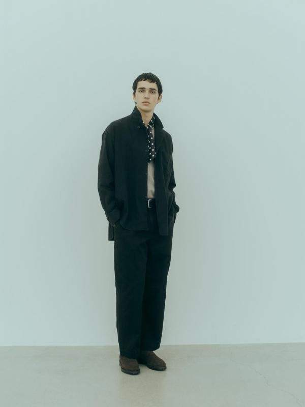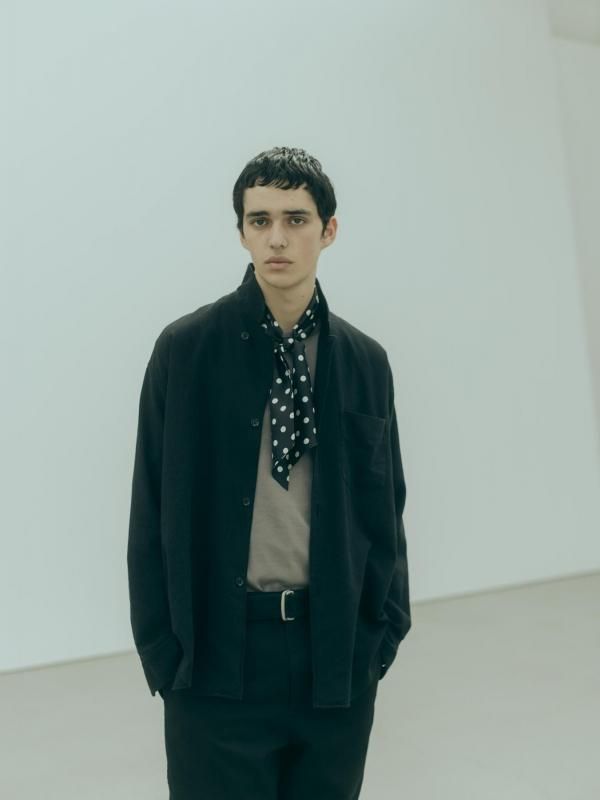 衿のゴージラインや3つボタンのフロントが生み出す端正な雰囲気に、袖はシャツ仕立てとすることで軽快さを兼ね備えています。