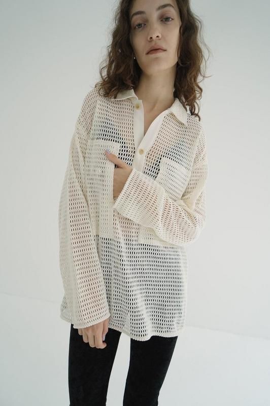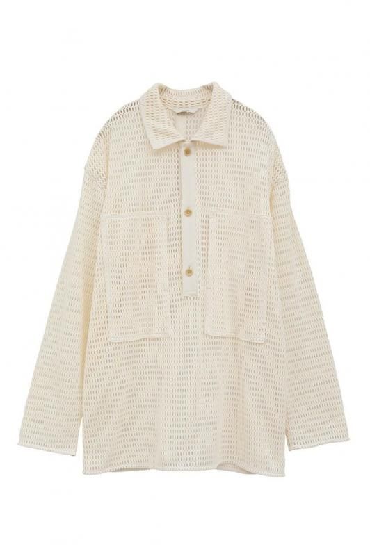 柔らかなコットン素材を使用した、肉厚なメッシュが特徴のオーバーサイズプルオーバーシャツ。