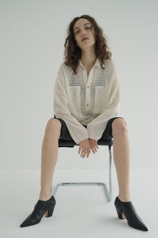 フロントは深めの開きに設定しており、ボタンの開け具合でカジュアルにも女性らしくも着こなせる一枚です。
