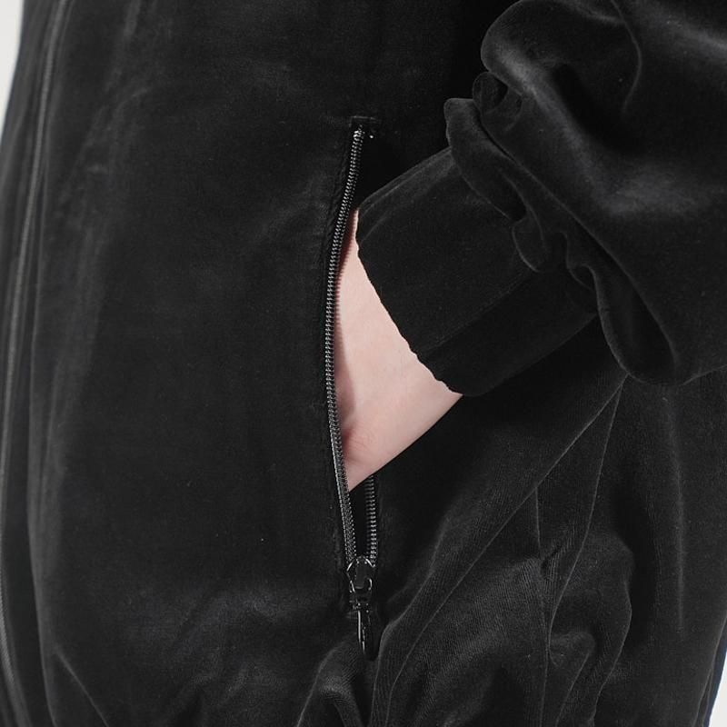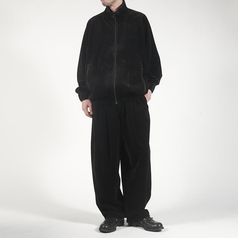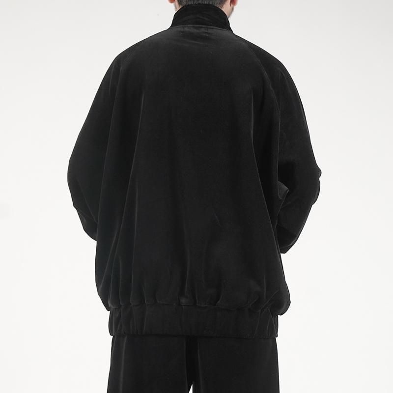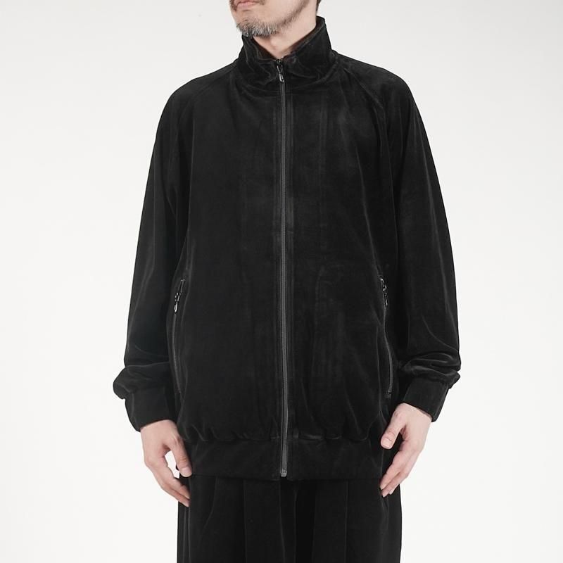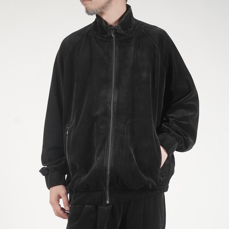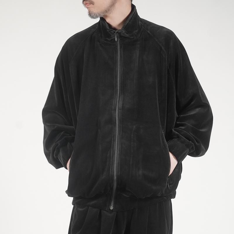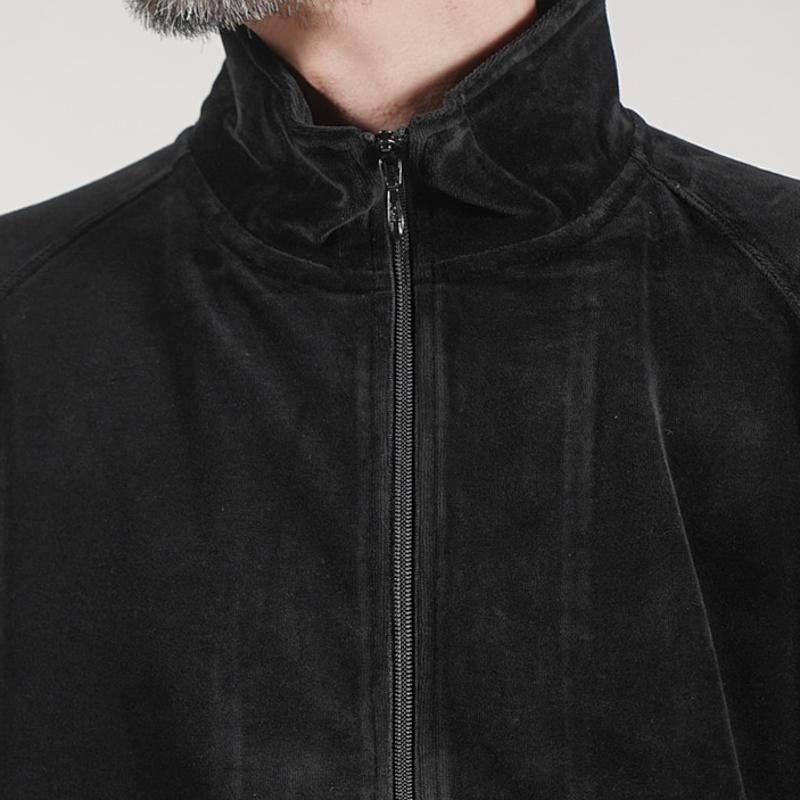 カジュアルになりがちのベロアを高密度のハイゲージで編むことで度目が詰まりダレにくくナチュラルで上質な光沢感がでるように設計。原料はオーガニックコットンを使用してコンパクト糸にすることで毛羽感が少なくシャープな仕上がりに。オーセンティックなトラックジャケットをミニマルにモダナイズ。ゆったりとボリュームのある身幅でありながらも襟元と袖口、ヘムをしっかりとまとめることで上品なルックスに。