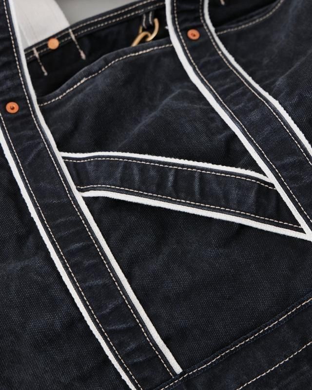 1920s〜1950sに登場した米国のツールバッグからインスピレーションを得てデザインしたショルダーストラップ付きトートバッグ。生地はシャトル織機で織り上げられた6号と10号帆布にワッシャー加工を施し、製品後にストーンウォッシュで仕上げてヴィンテージライクなアタリを演出しています。