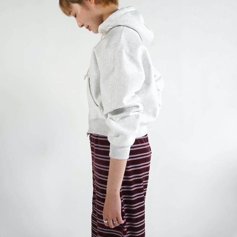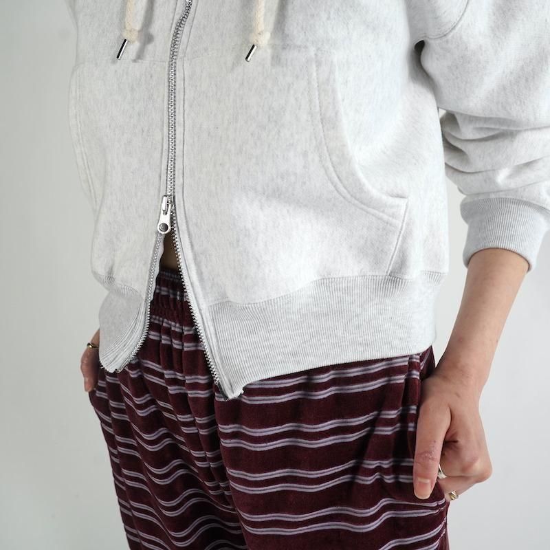 コンパクトなシルエットのジップアップパーカー。 羽織としてはもちろん、アウターのインナーとしても 活躍し、幅広いスタイルに取り入れやすいアイテム。 YELLOW,PURPLE は製品加工を施し、ユーズド感をプラス。