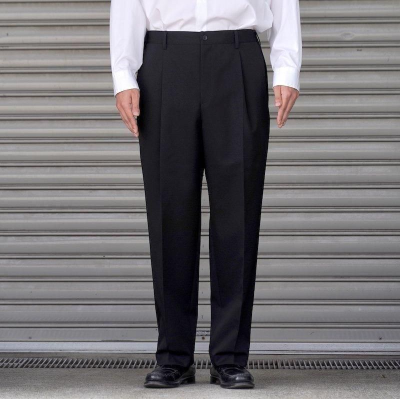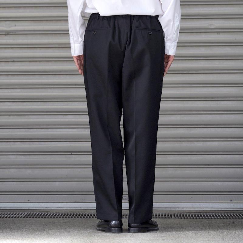 ウエスト後ろ側にゴムを入れイージーフィットするテーパードスラックスはフロントにタックを入れてクラッシックな雰囲気もありスーチングスタイルも楽しめる一本。