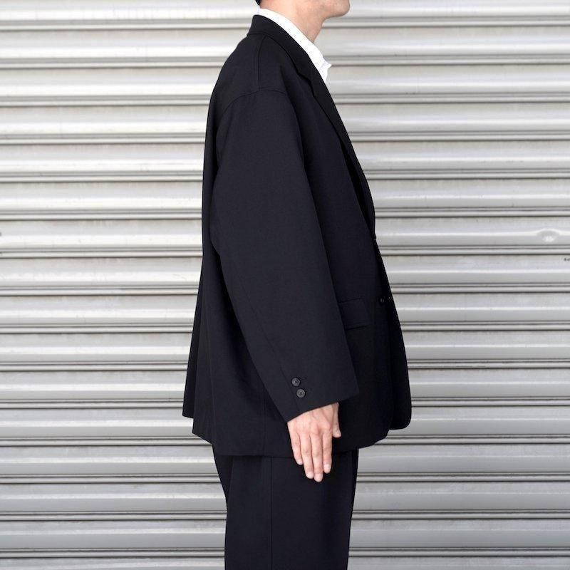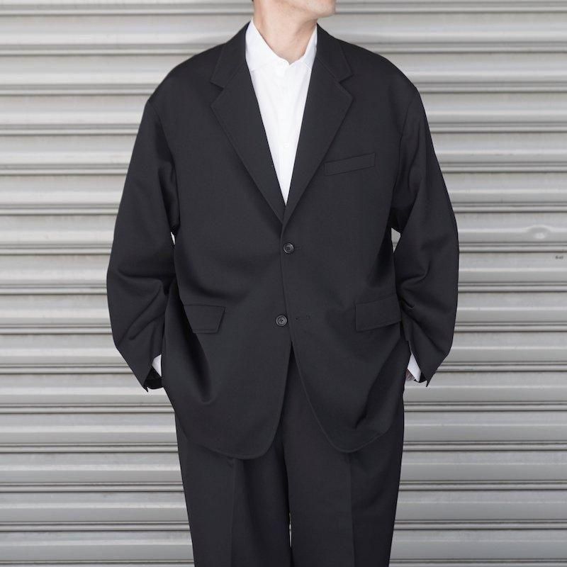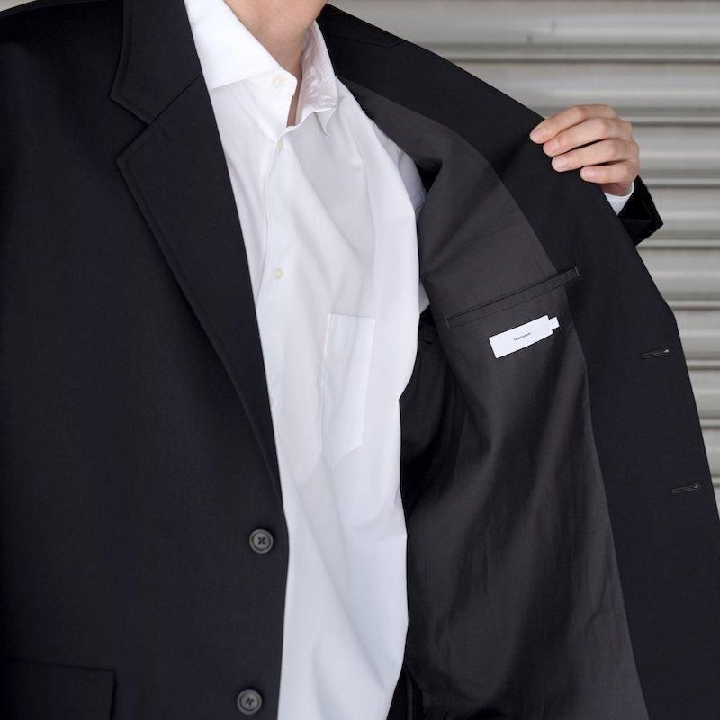 ゆったりとしたサイジングを強調するハリ感と、動きとともにしなやかに揺れるドレープ感がクラシックなテーラードジャケットをミニマルにモダナイズされたシルエットはウエストシェイプの無いボックスで毛芯仕立ての2Bジャケット。