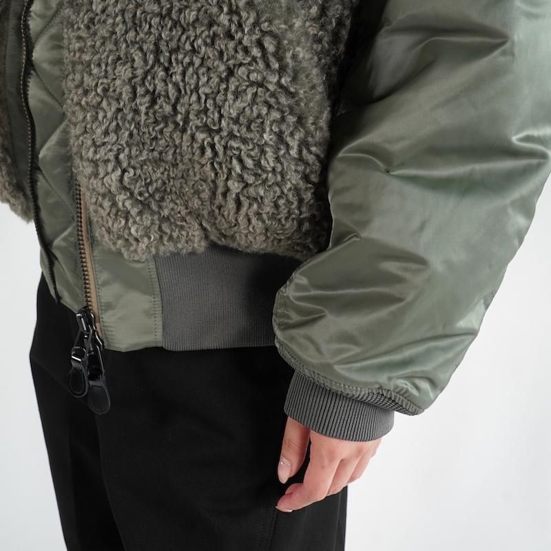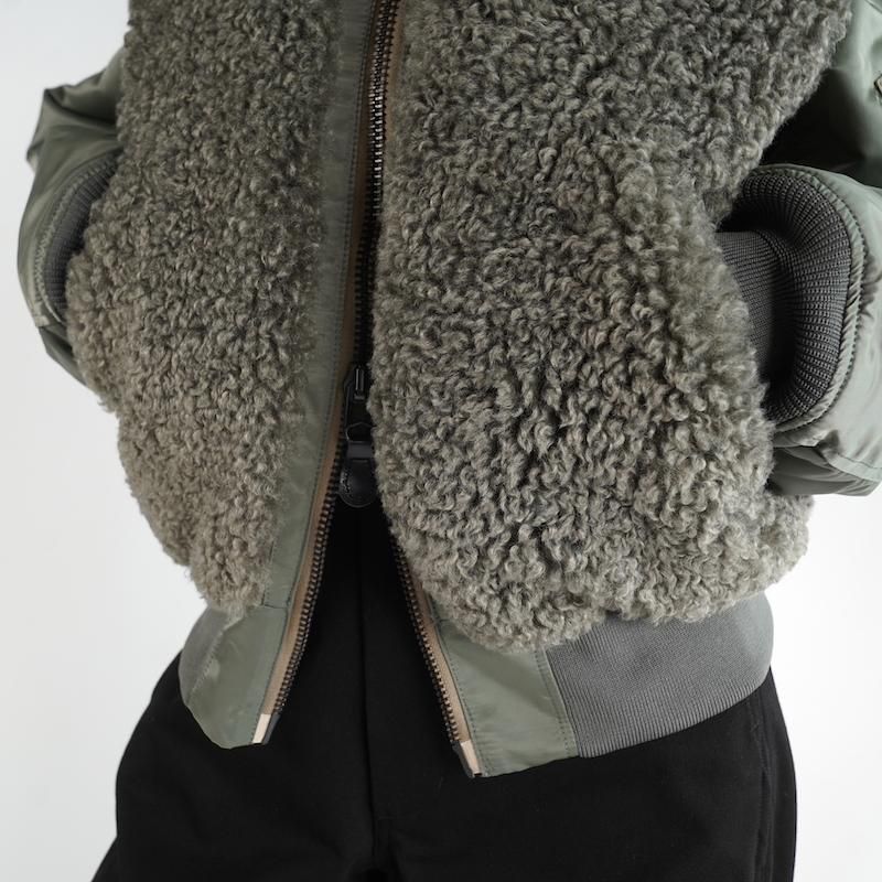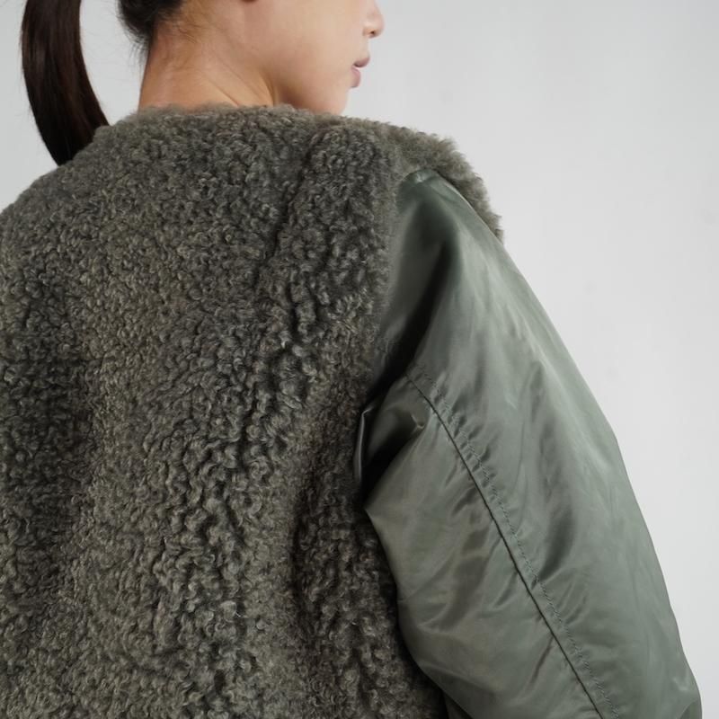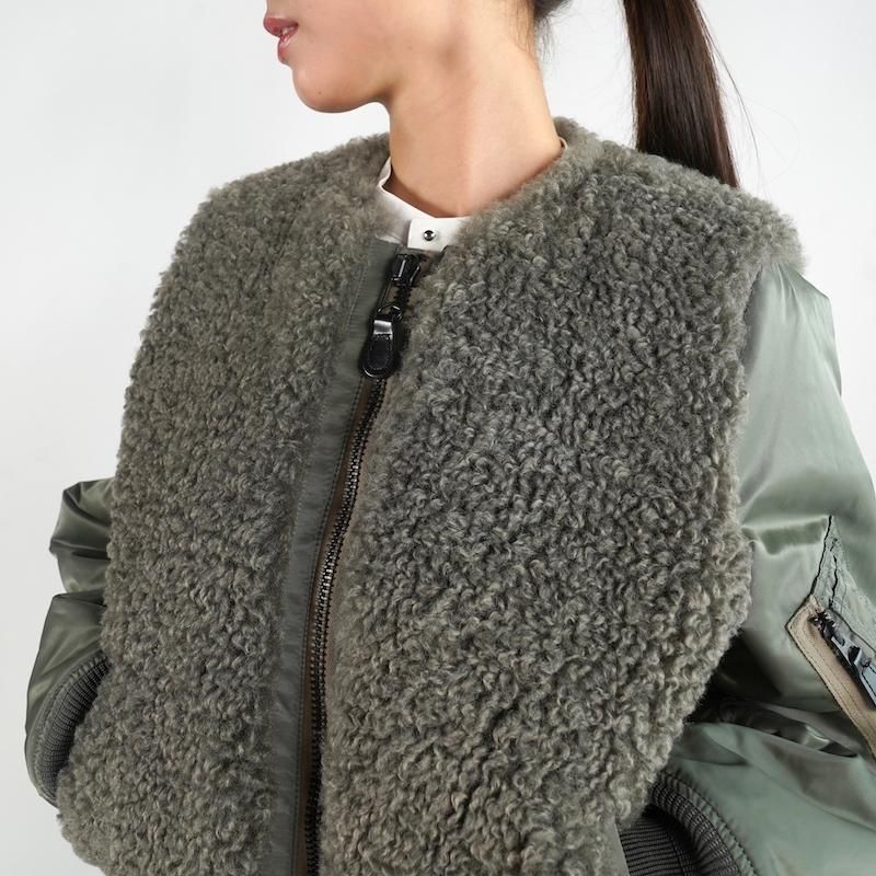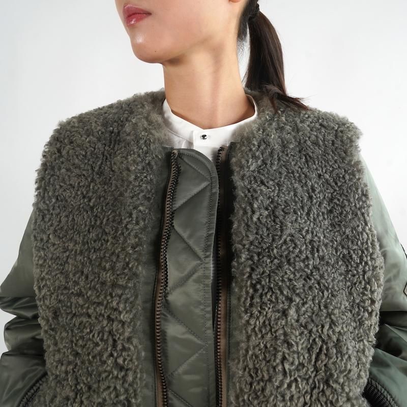 袖はナイロンツイル、見頃はポリエステルファーを使用。