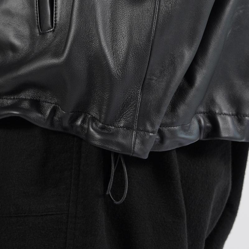薄くてしっとり柔らかな質感で、手に吸い付くような肌触りが魅力のシープスキンを使用したボリュームのあるシルエットのトラックブルゾン。ライニングにはドライタッチで速乾性に優れたメッシュ素材を採用したスポーティな面を併せ持つ一着。