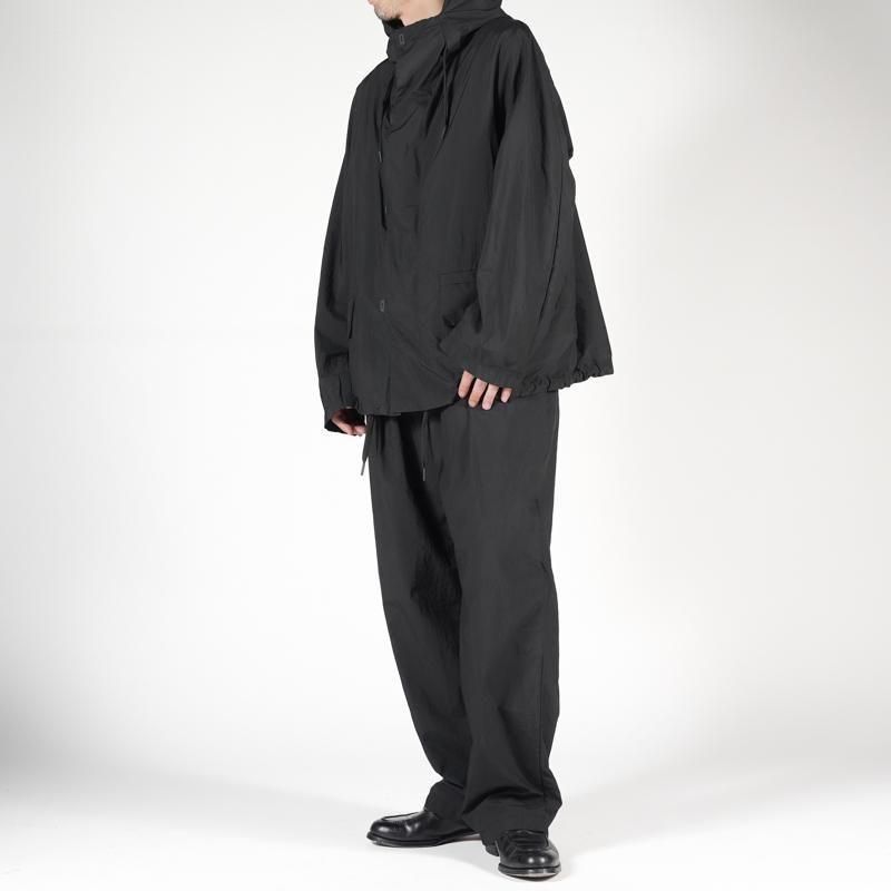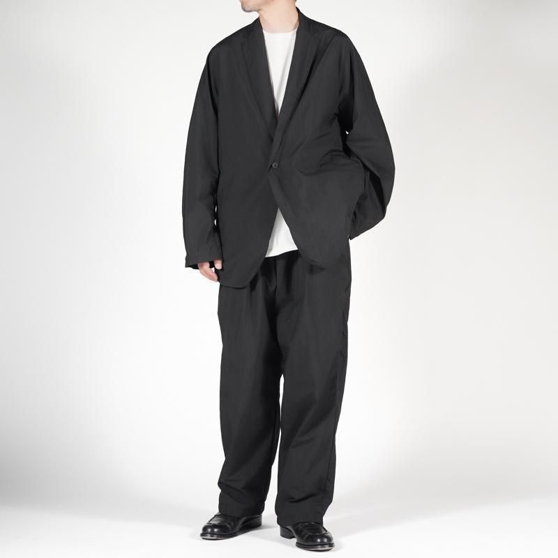 このパッカブルシリーズは 旅の荷造りをスマートにするというコンセプトのラインです。このラインの商品は全てパッカブルで 衣服内部にあるパッカブルポケットに収納できます。この機能を可能にしたのは特殊な糸。ミクロ単位で起毛したナイロン糸は まるでコットンのような肌触りを持ちながら、シルクのようなハリコシを持ち、 ナイロンの強度を持つ糸。その糸をマイクログログラン状の組織に織り上げることで 皺になりにくく、軽く、強く、天然素材の様な着心地を備えたテキスタイルに。ビジネスにも耐える面を持ちながら、機内ではリラックスでき、雑に扱えるタフさ。 旅の帰路、増えがちな荷物の中に、コンパクトに丸めてポンと投げ込めるようなJKT。 そんなコンセプトから生まれたシリーズは ビジネストリップに煩わしいガーメントケースを排除し、到着後の着替えの手間すら省きます。