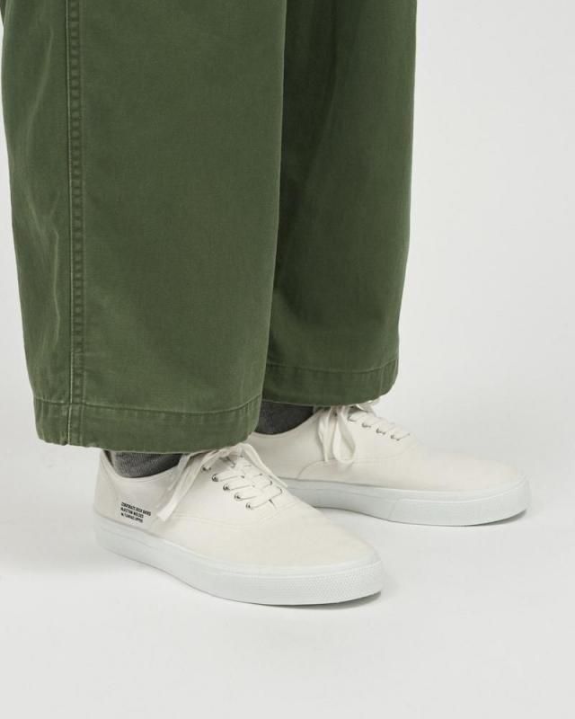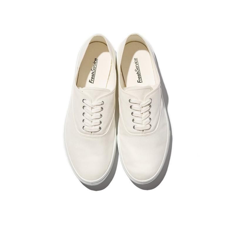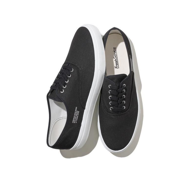 架空の配送会社のユニフォームをイメージしたFreshServiceのデッキシューズ。久留米に本拠地を構え、120年以上の歴史を誇るアサヒシューズが手掛けるこだわりの日本製。ストレスの無い幅広のワイズで独自に制作したラバーインソールを採用。