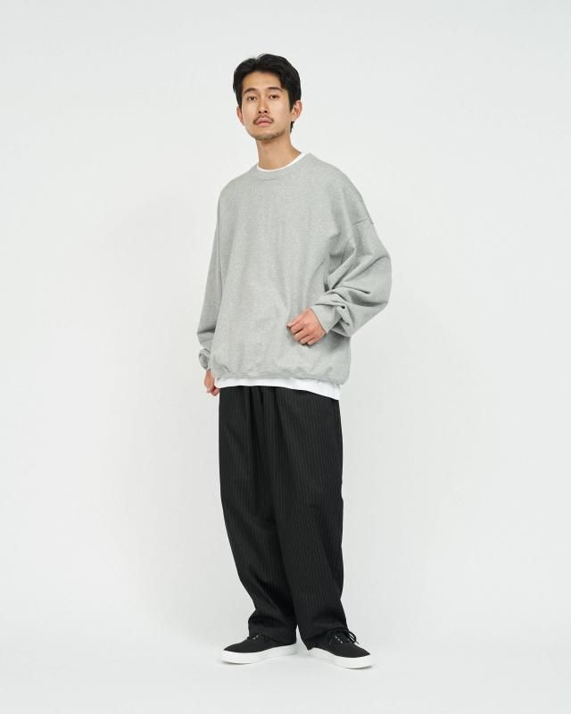 春先から秋冬と長いシーズンで活用出来る程良い厚みのクルーネックスウェット。