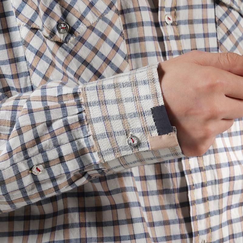 ウエスタンシャツをモチーフにした新型のGUPTA。襟や袖口には多重のステッチが入り、肩の切り返しや袖付け部分にも特徴的な縫製仕様が用いられています。所々、手縫いで作られている箇所もあり、より一層、味のある表情に仕上げています。随所に散りばめられた特徴的なステッチや真鍮素材のボタンなど、快適さだけではなく、ファッション性もしっかり兼ね備えています。
