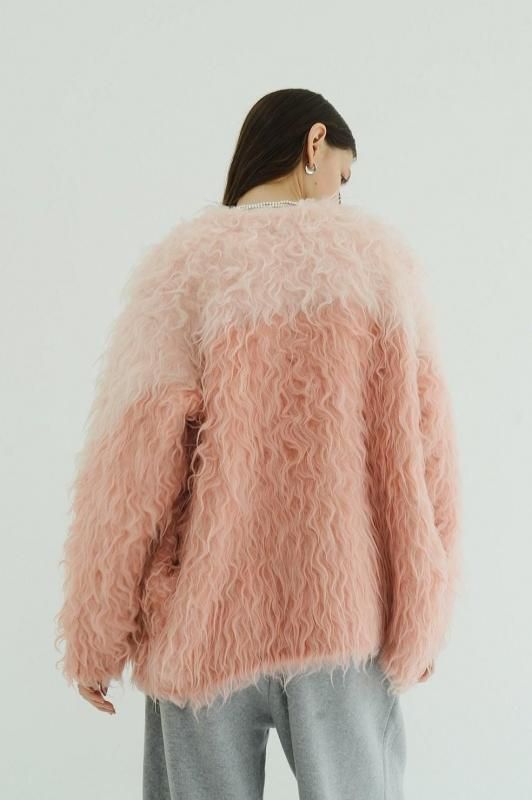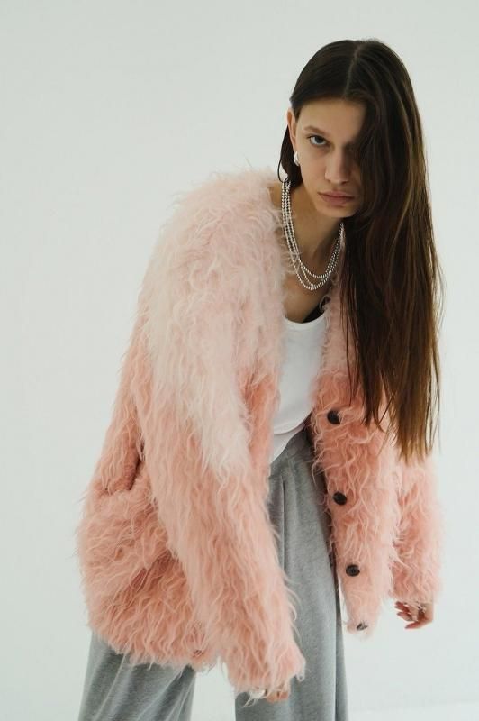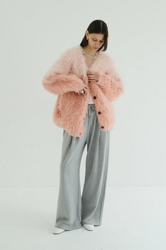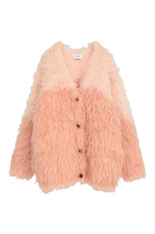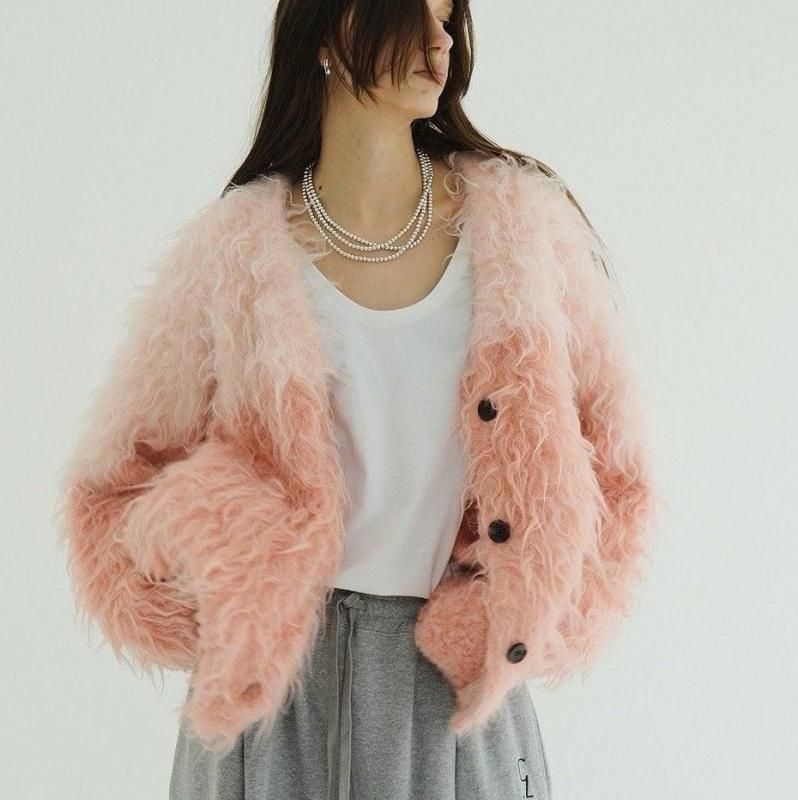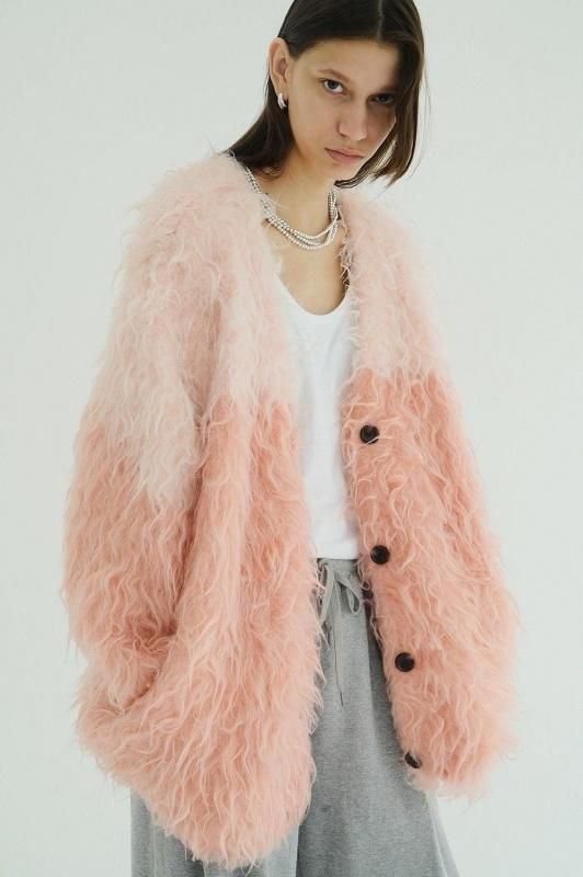 [CLANE] クラネ BI COLOR SHAGGY KNIT CARDIGAN(PINK)
