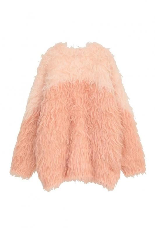 毛足を長めにし、ボリューム感を出したバイカラーシャギーニットカーディガン。