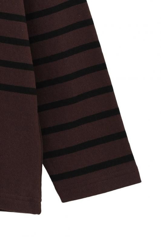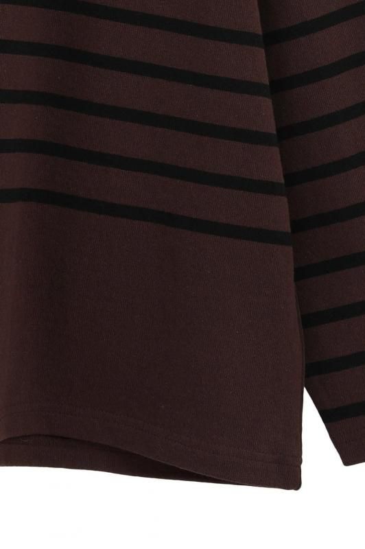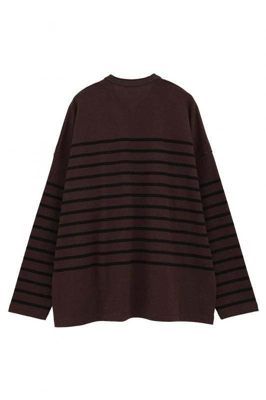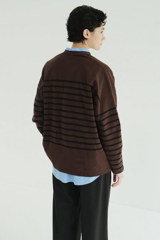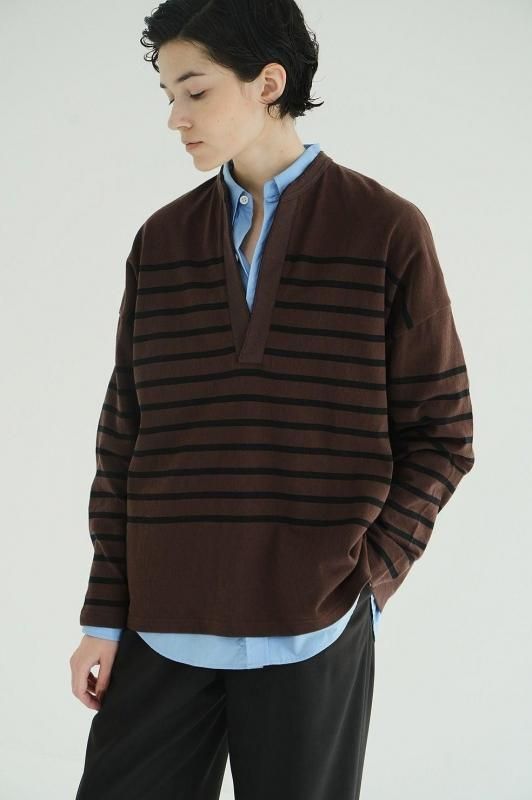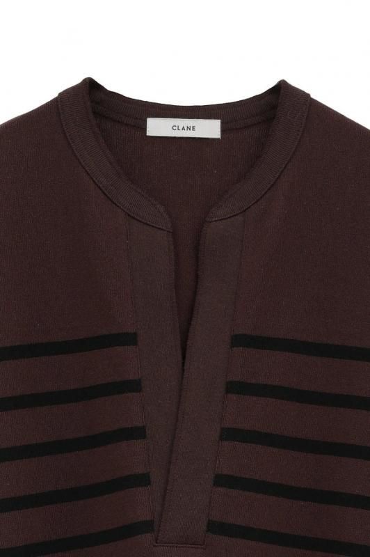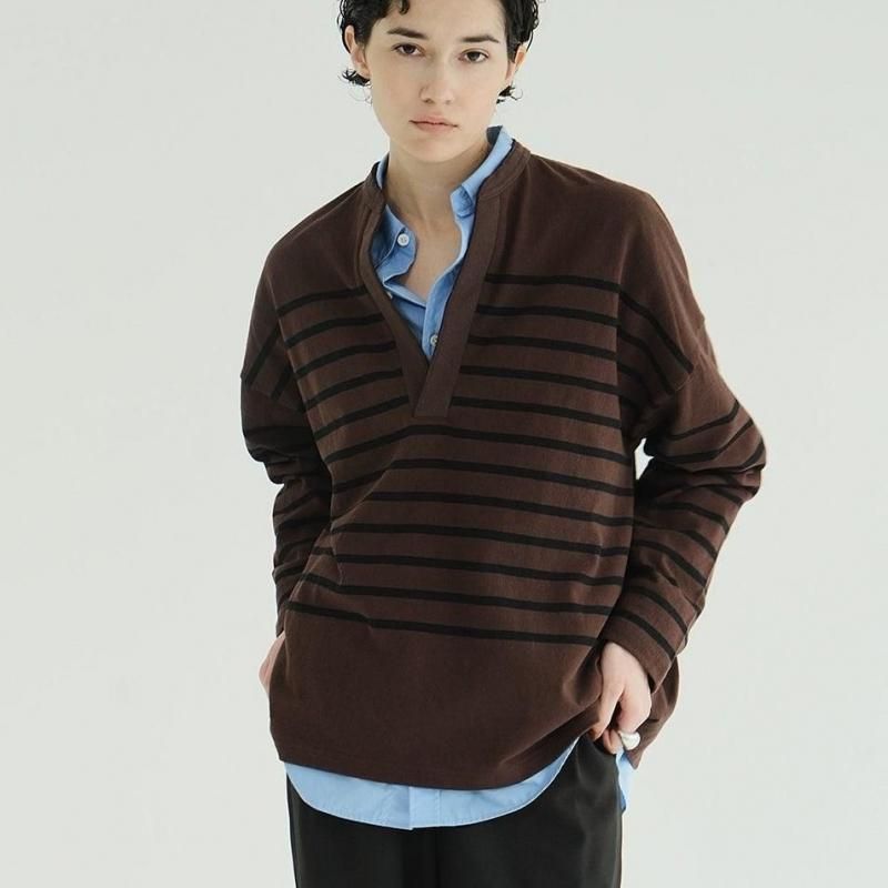 深めのヘンリーネックデザインをボーダ柄のロングスリーブトップスに落とし込み、CLANEらしく仕上げました。