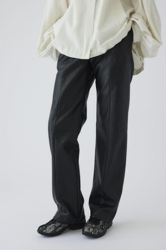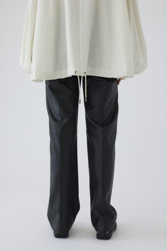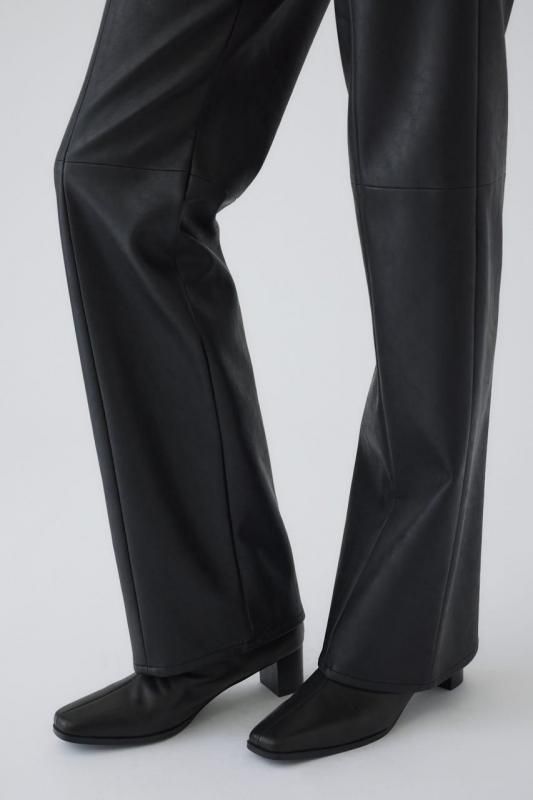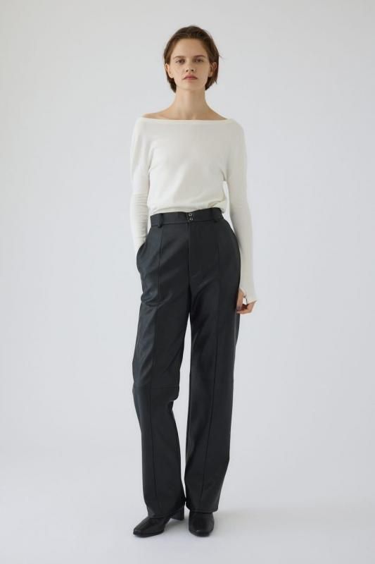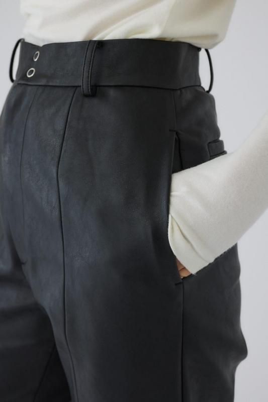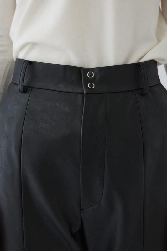 ■POINT:まるで本革のようなルックスの合成皮革を使用したマニッシュかつモードなパンツ。