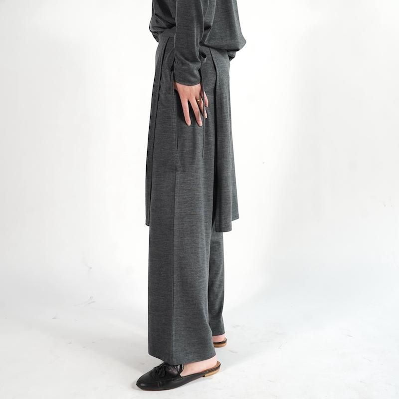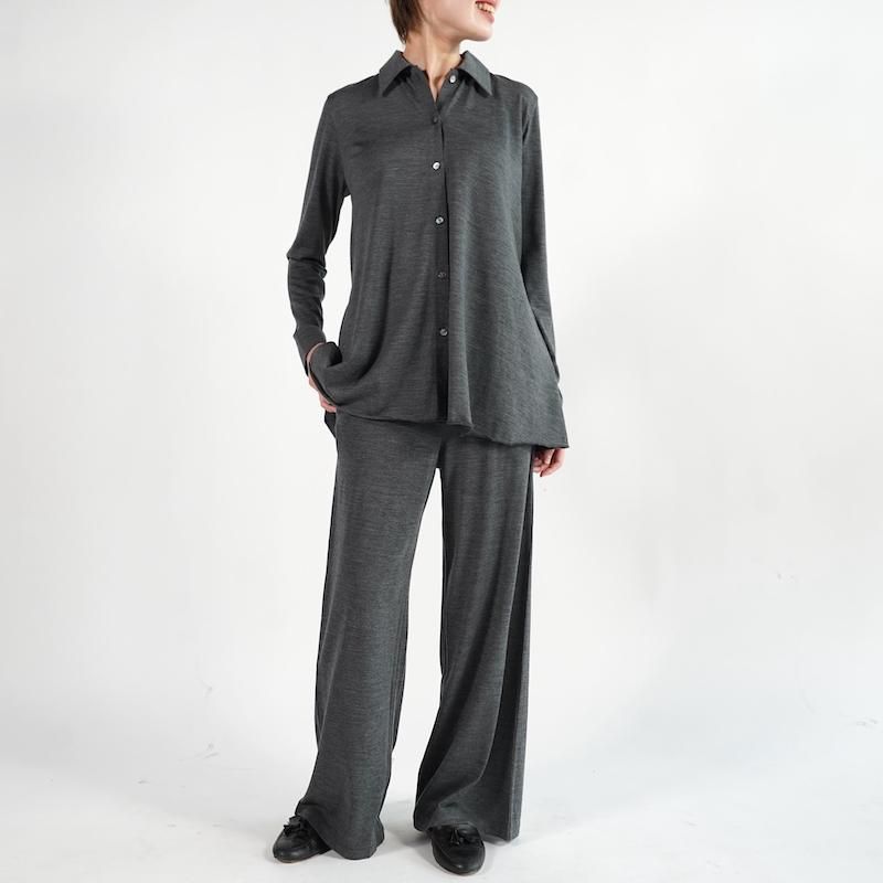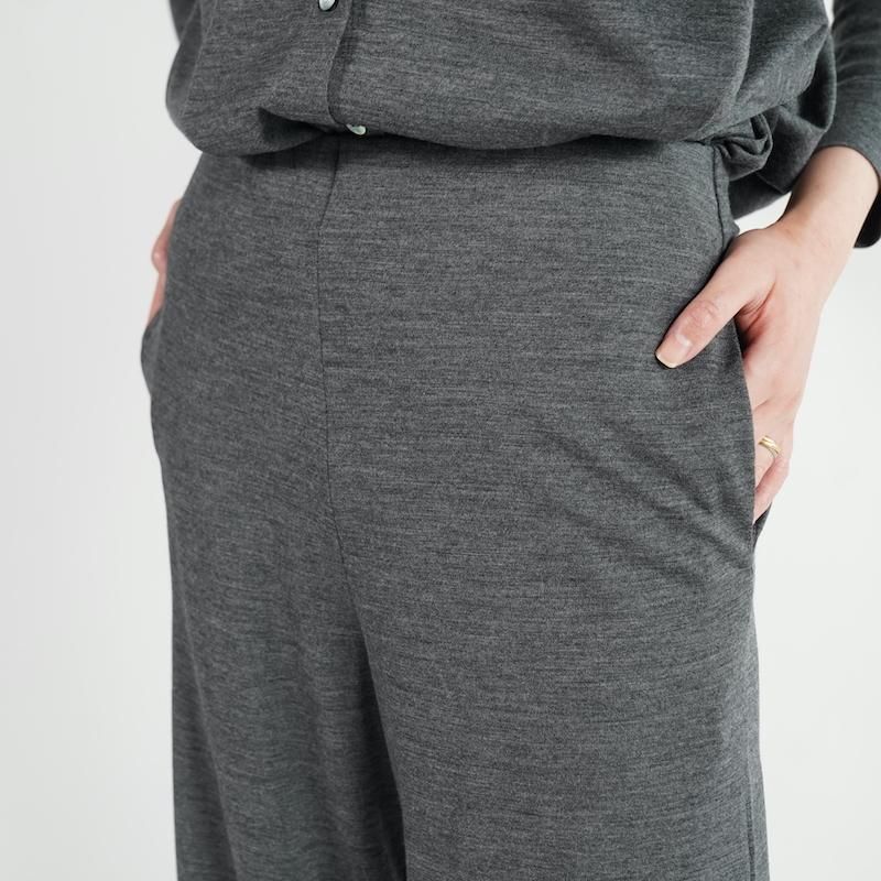 細番手ウール糸を使用し、薄手で使いやすい肉感と キメ細やかでコンパクトな表情に仕上げた素材。 美しい光沢と優れたストレッチ性があり、 ウール特有のチクチク感を軽減。