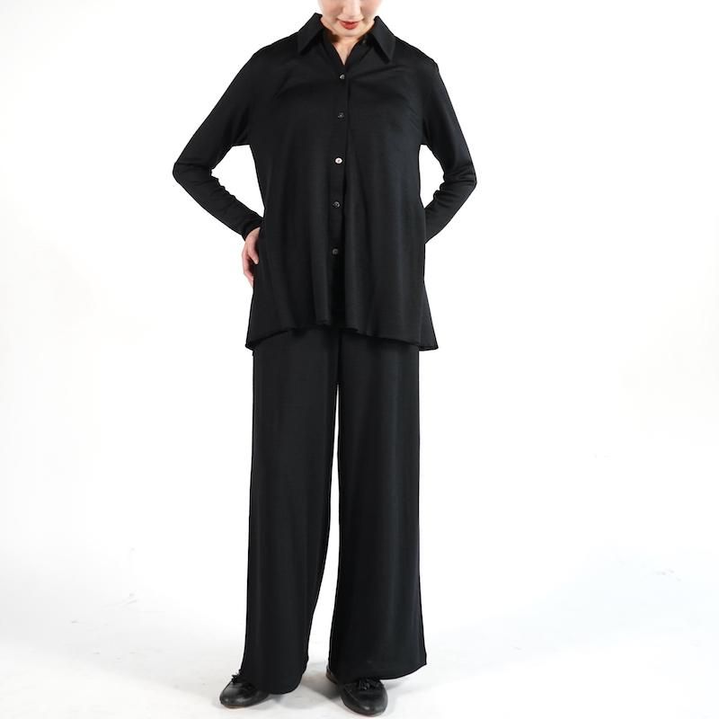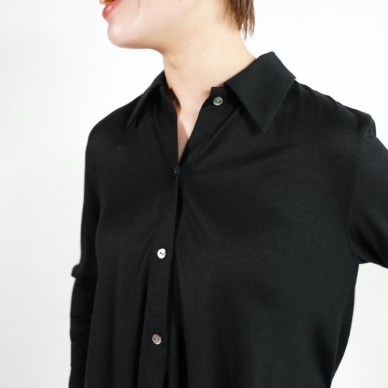 細番手ウール糸を使用し、薄手で使いやすい肉感と キメ細やかでコンパクトな表情に仕上げた素材。 美しい光沢と優れたストレッチ性があり、 ウール特有のチクチク感を軽減。