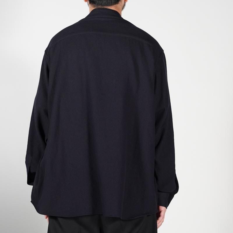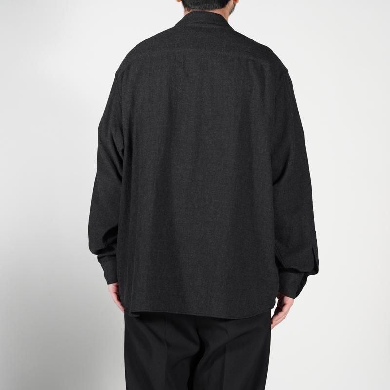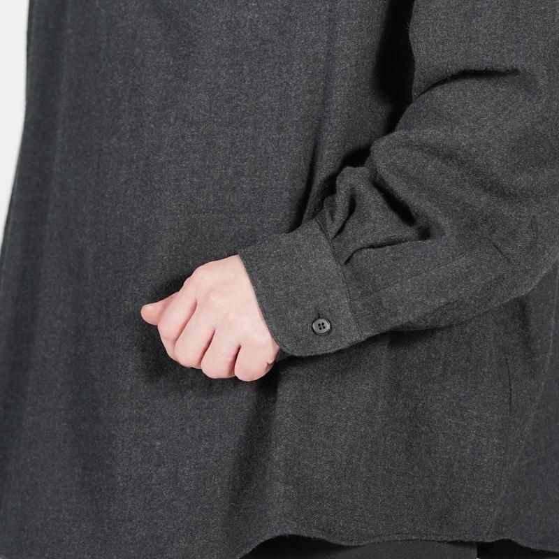 【表地】カシミアに匹敵する繊維の細さのsuper180'sメリノ梳毛糸を使用して織り上げたライトフランネル。軽めの縮絨で原料の柔らかさを最大限に活かしたシャツウエイトの上質素材。原料のもつ自然な光沢と、一切痒みの無い滑らかな肌当たりが特徴