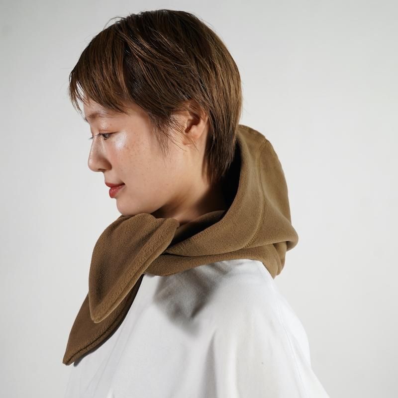 フードのように頭部分を後ろに倒して被るのもおすすめです。