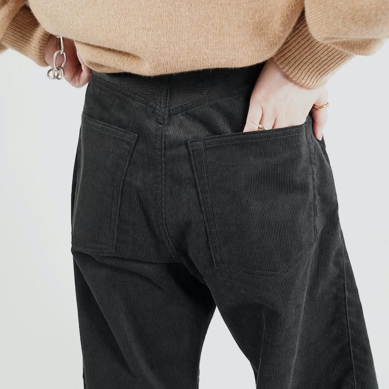 通常のコーデュロイよりもパイルとパイルの間の間隔を広く設計し、毛足を短めにカットしているのでユーズドライクな表情のある素材。