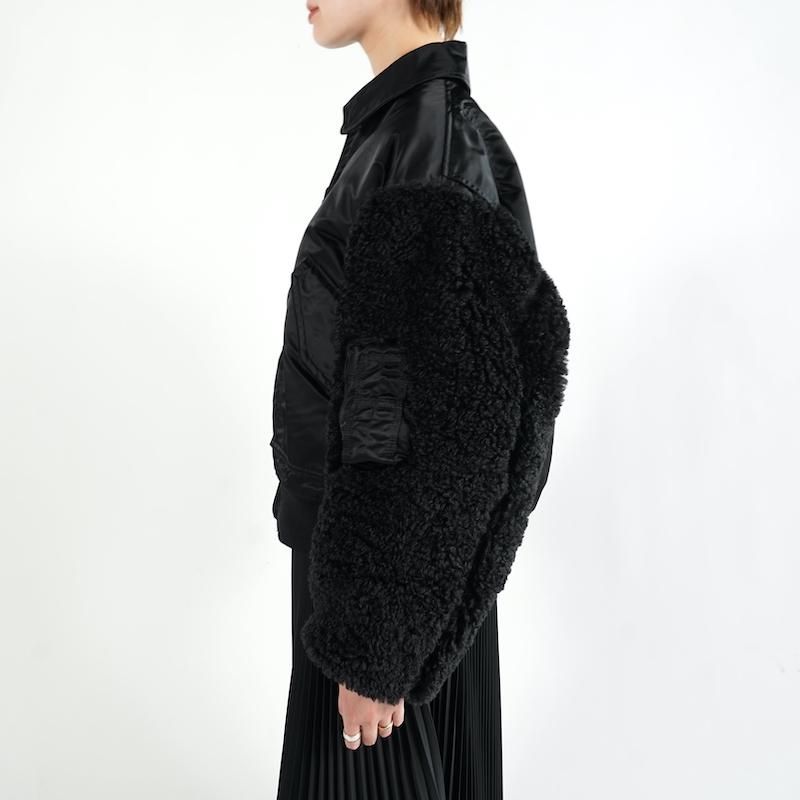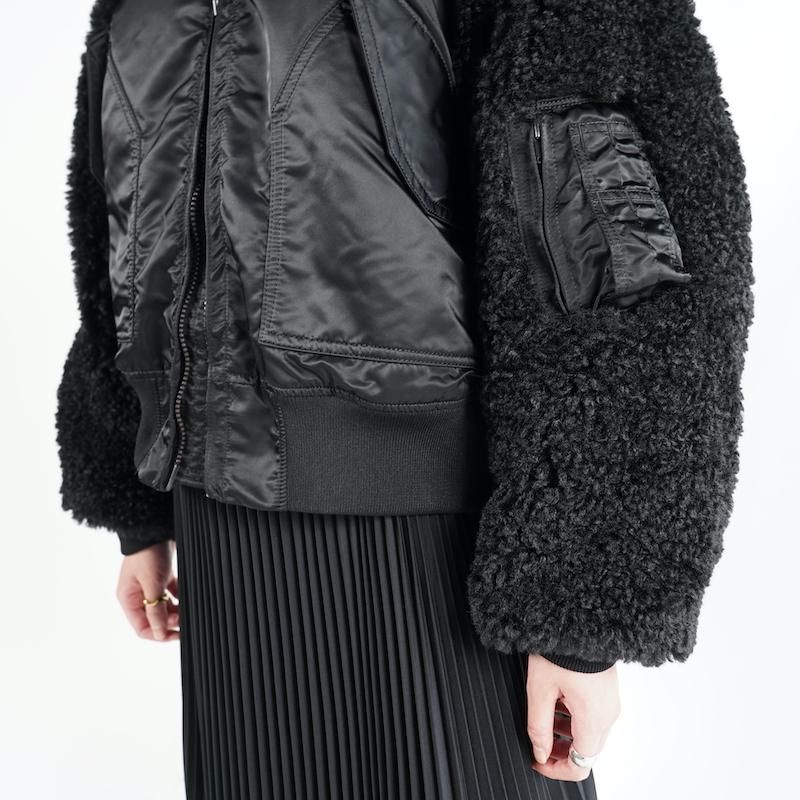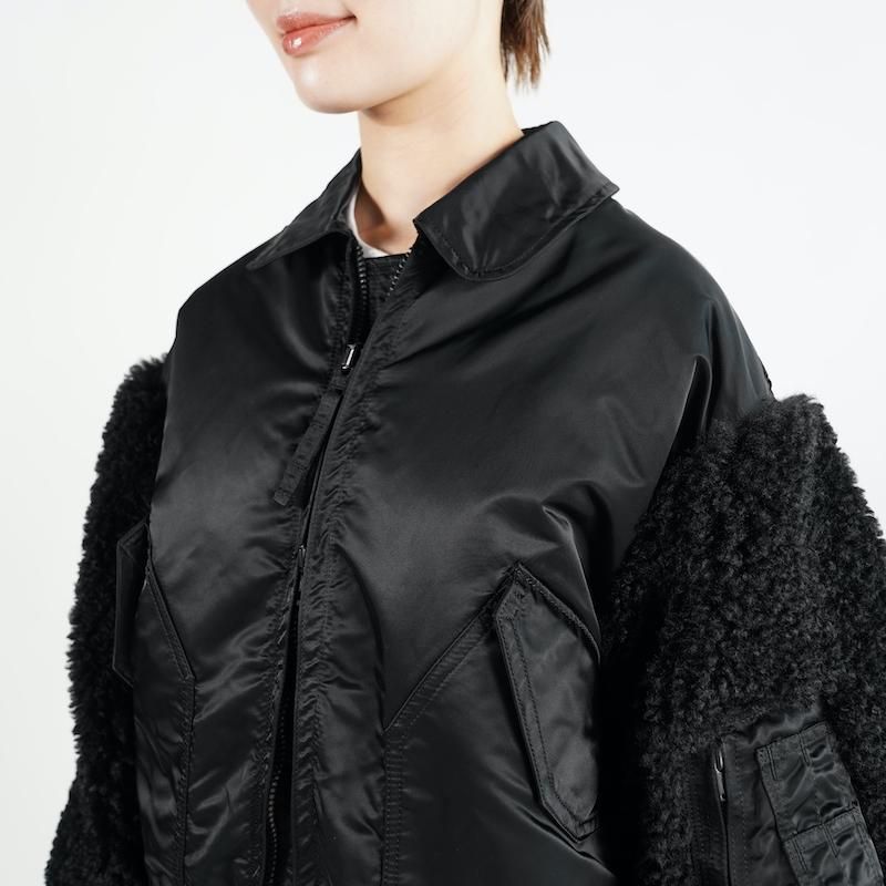 袖はポリエステルファー、見頃はナイロンツイルを使用。
