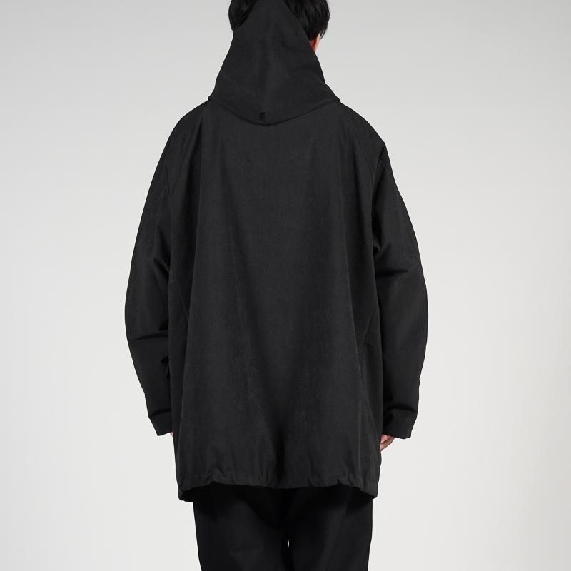 こちらは、テアトラ唯一の撥水素材として開発されたバリアライザーシリーズからのリリースとなる"Souvenir Hunter M/L " 。こちらは定番で展開されている身幅にゆとりを持たせたフーデットパーカー”Souvenir Hunter ”をミディアムレングスにしたモデル。