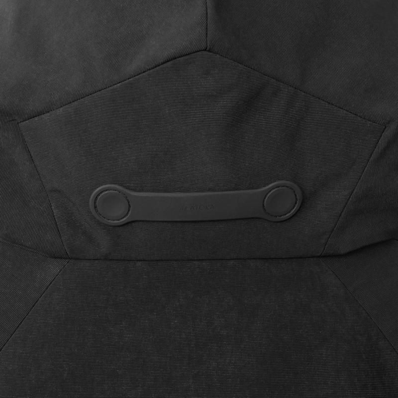 “傘も鞄も持たない“ をコンセプトに開発されたバリアライザープラスは、悪天候な時こそ手ぶらで出かけることを目的に開発された、冬季悪天候用アウター。