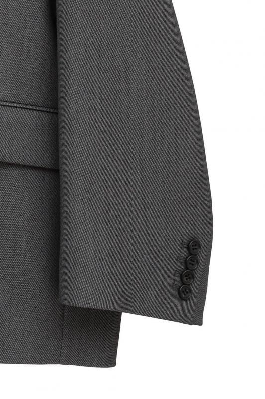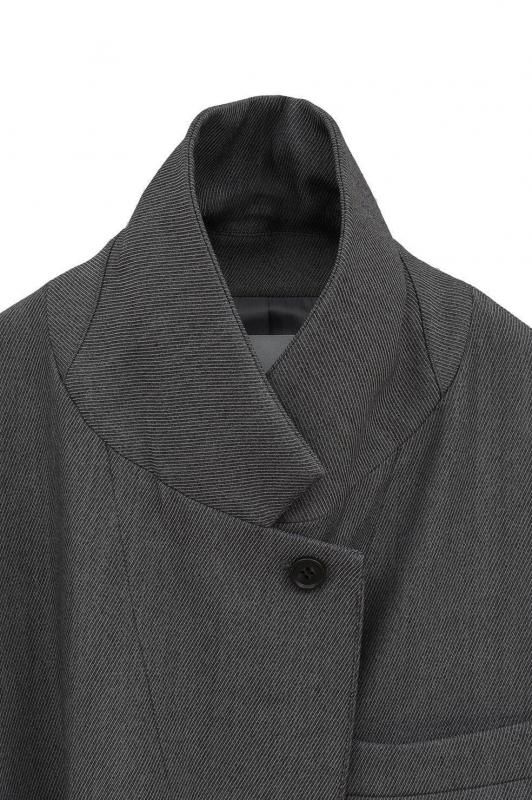 通常のジャケットシルエットに加え、左外脇に釦、右脇の内側に施したタブと釦ホールを留めることでウエストをシェイプした女性らしいシルエットでの着こなしが可能です。ラペルにも釦とホールを施しているので、襟を立てて違った印象の着こなしも楽しめます。