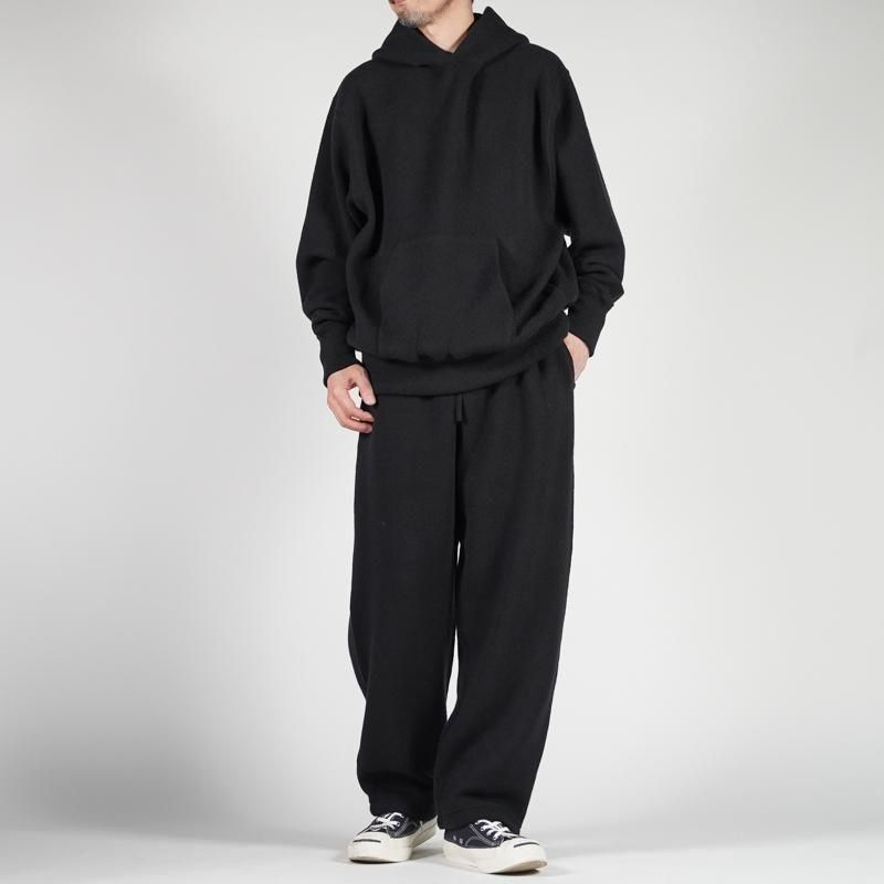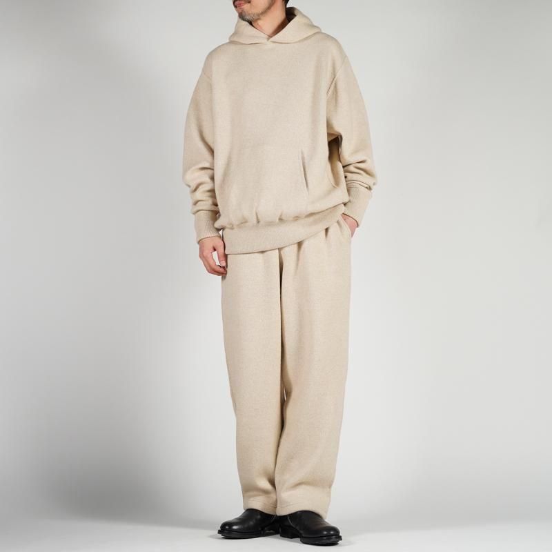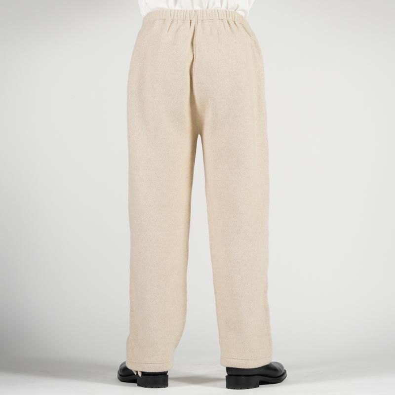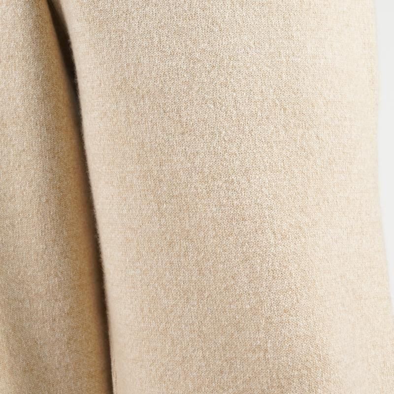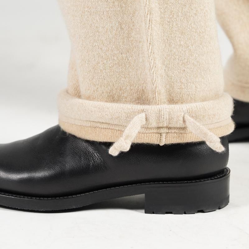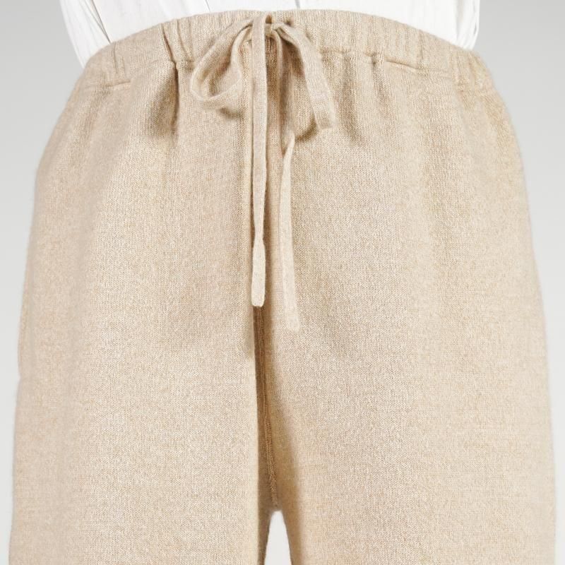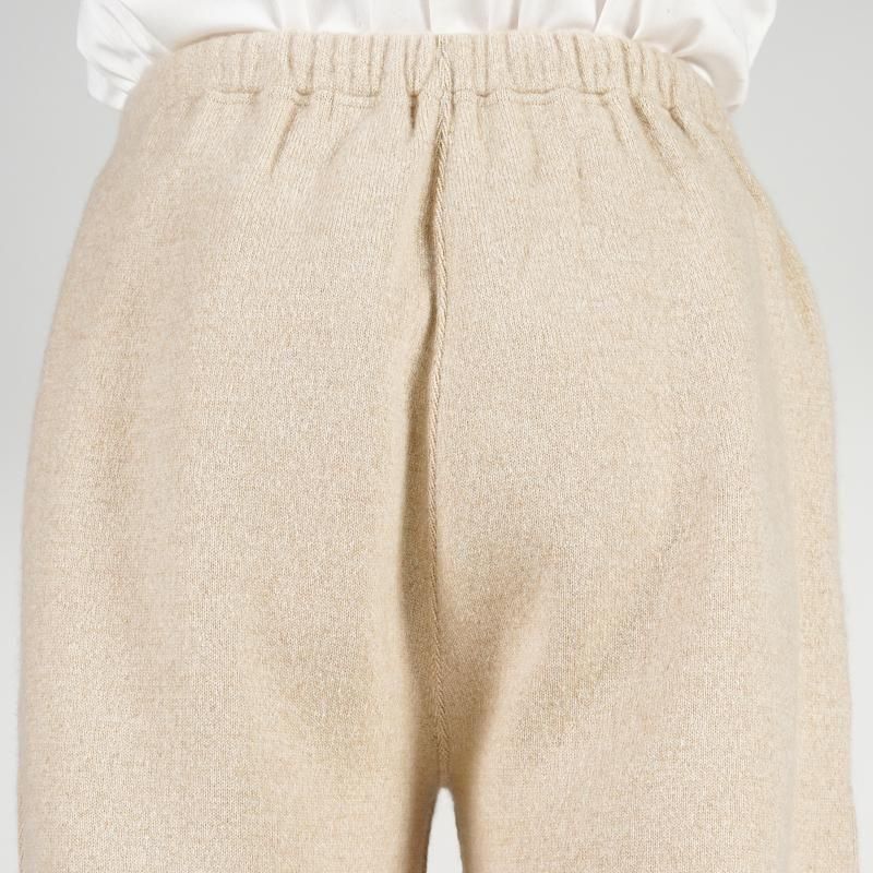 ゴールデンキャッシュと呼ばれる通常のカシミヤのわずか0.1%程しか生産されない希少な原料を使用し他では再現できない自然の色味と風合いを活かしたこちら。通常のブラウンカシミヤに比べて体色が金茶から赤味を帯び産毛は淡いベージュで繊度が細かいのが特徴です。スウェットのディティールを落とし込んだ贅沢な日常着でカジュアル感がありながらも上品な印象。着用するたびに艶やかさを増すニットパンツです。
