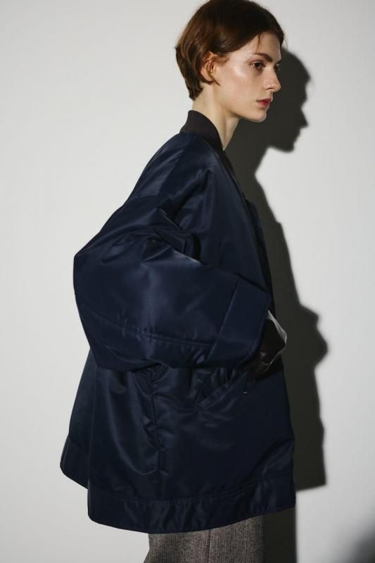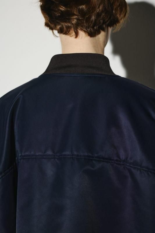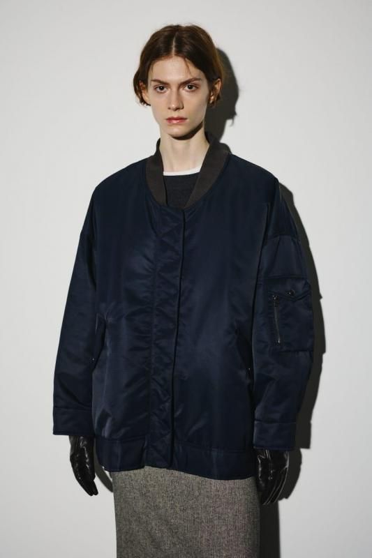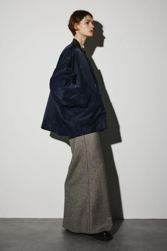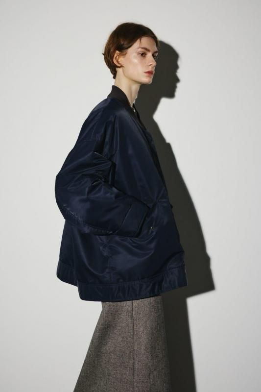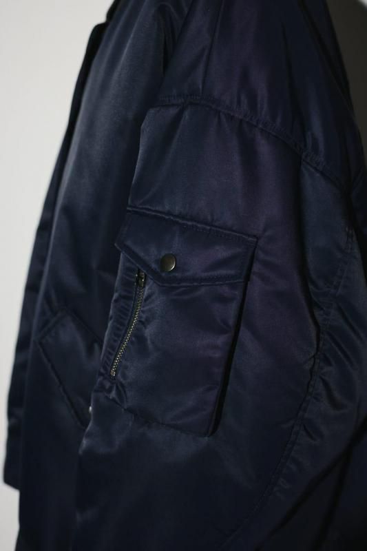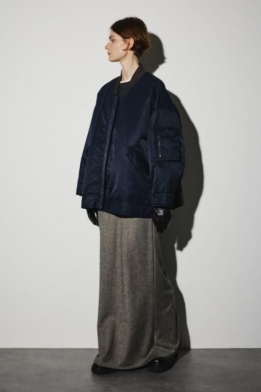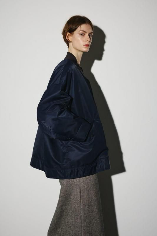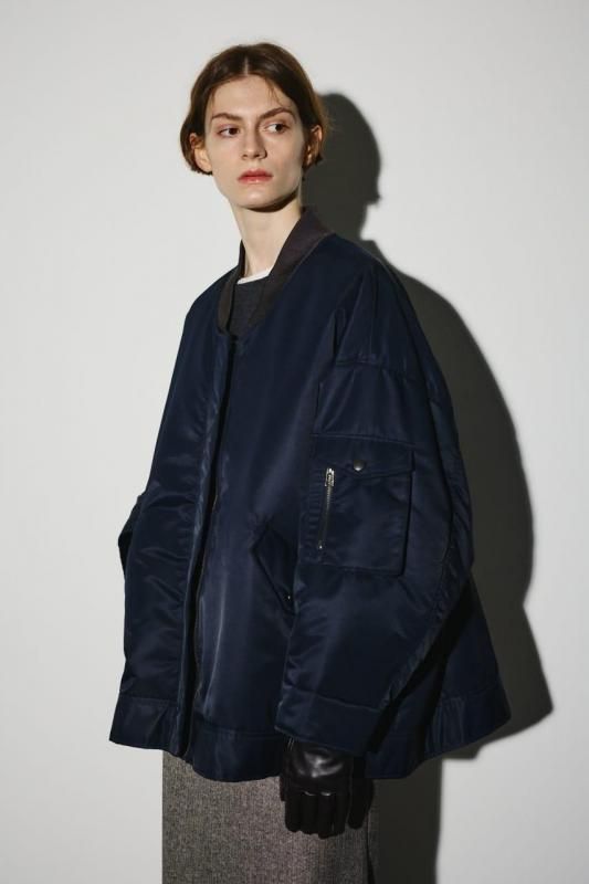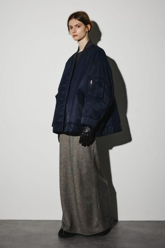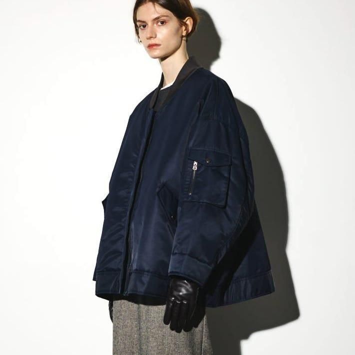 ■POINT:ワイドなシルエットのMA-1をあえて裾をリブでとめずハリを出したテントラインでスタイリッシュに仕上げました。