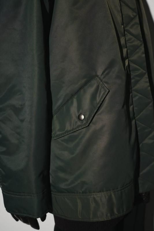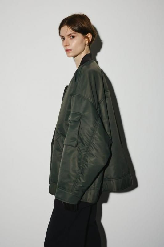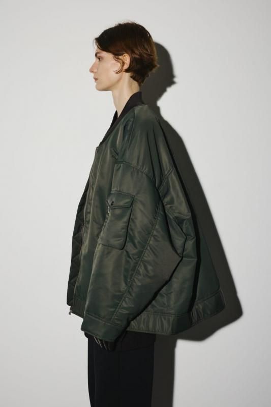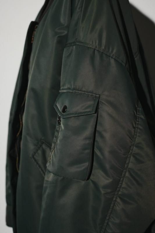 ■POINT:ワイドなシルエットのMA-1をあえて裾をリブでとめずハリを出したテントラインでスタイリッシュに仕上げました。
