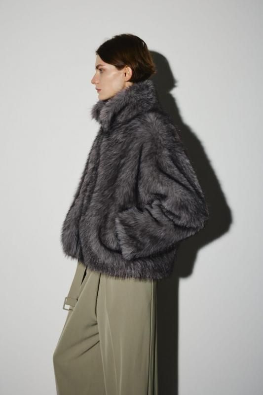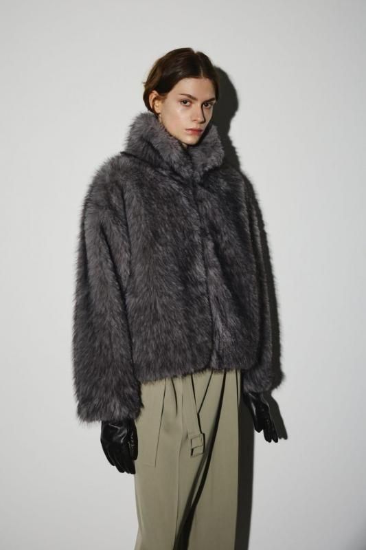 ■POINT:毛足の長いフェイクファーのボリューム感が目を惹くジャケット。
