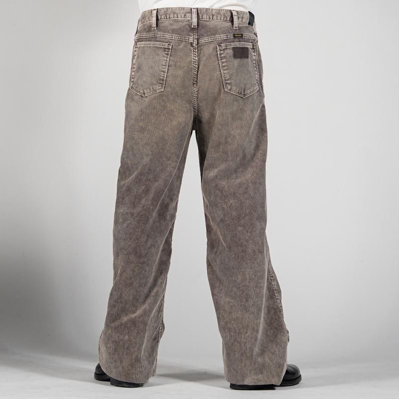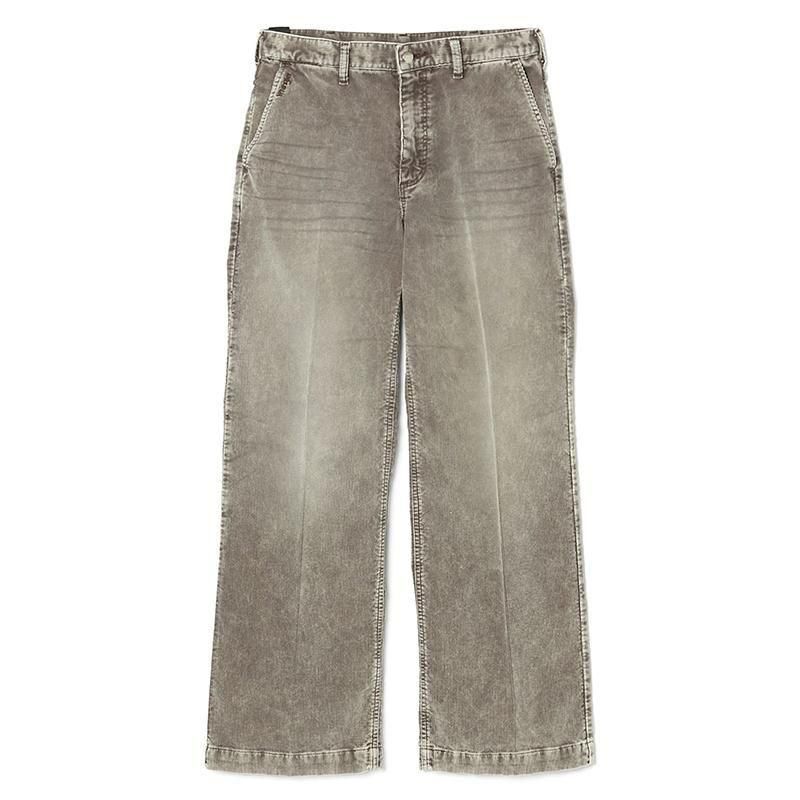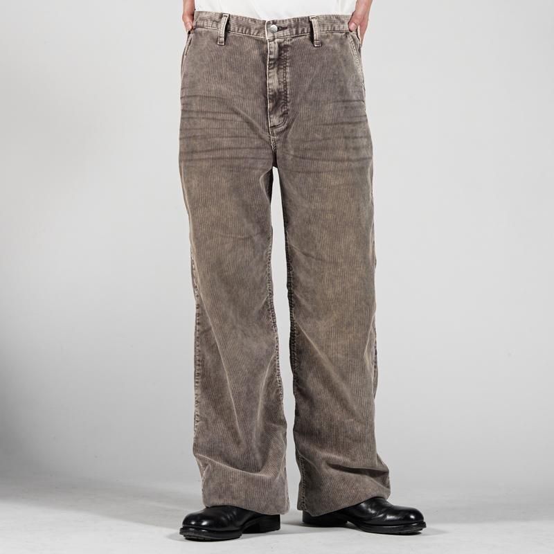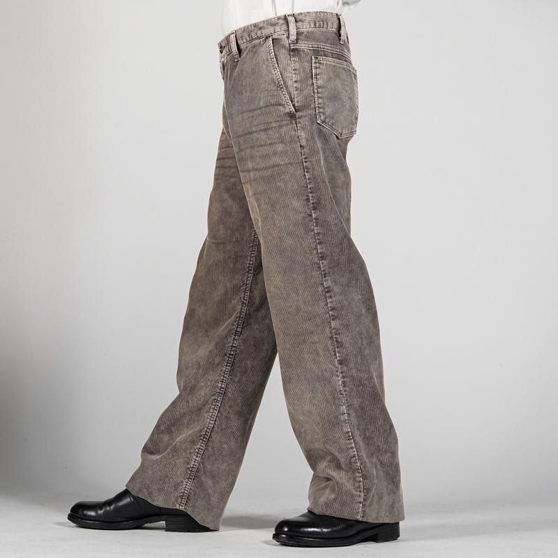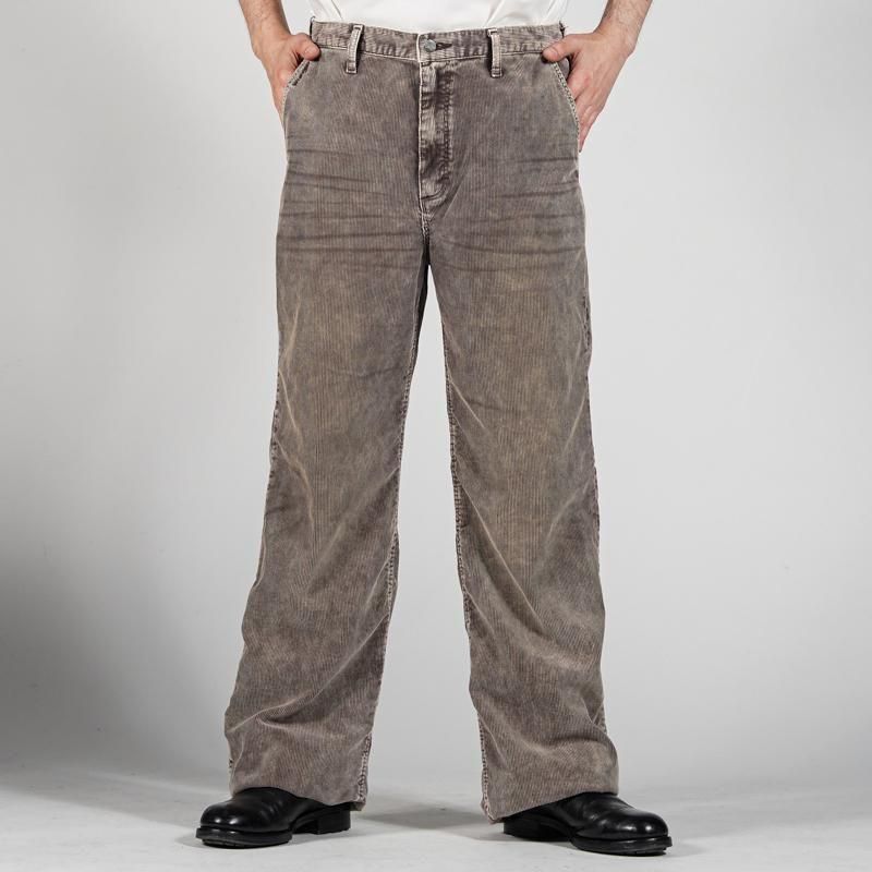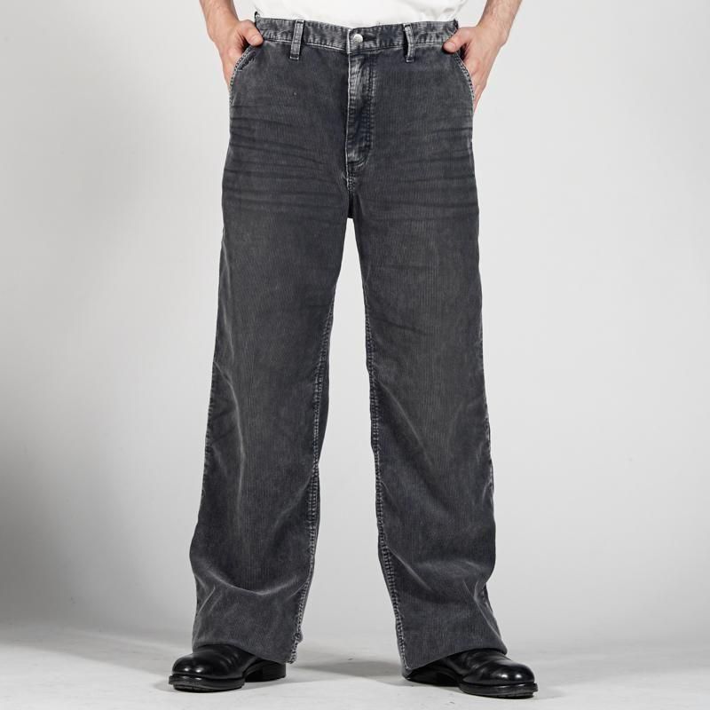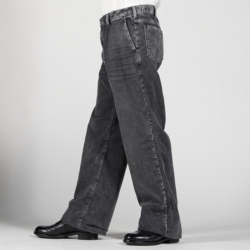 ・硫化染めをした14ウェールのコーデュロイ素材。ストーンバイオウォッシュ加工を施し、ヴィンテージの雰囲気を演出。