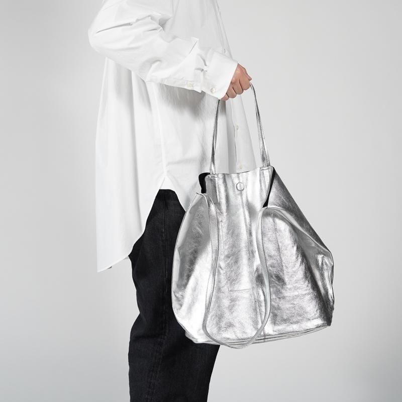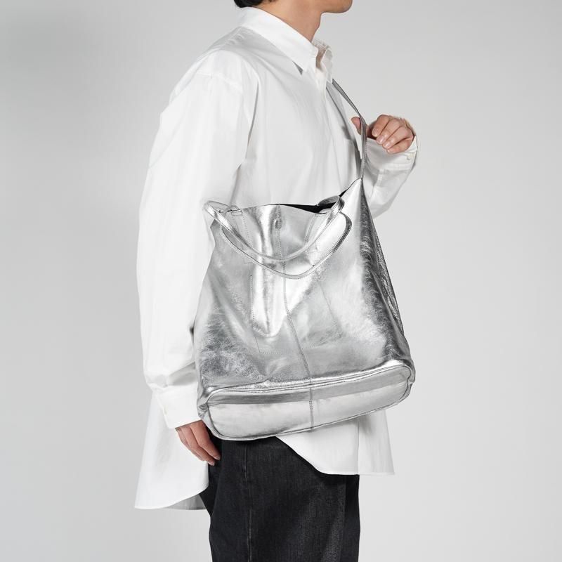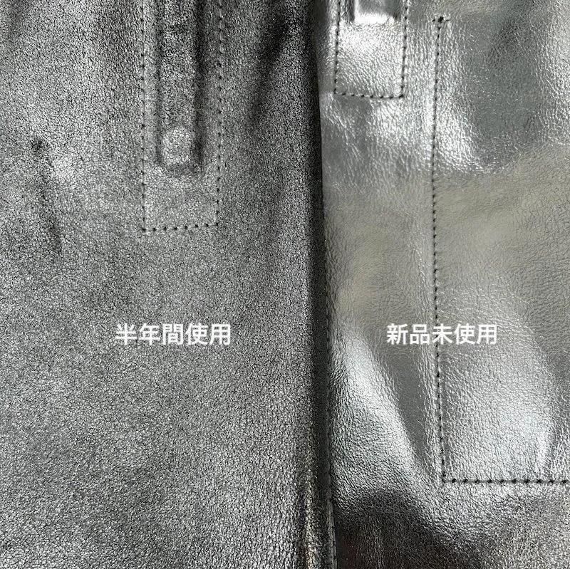 海外からの輸送にあたり折りたたんで梱包しております都合で、一部商品にシワ跡が残っている場合がございますが、レザー素材ですので使用しているうちに伸び、元に戻ります。また、革本来が持ちます特有の細かい傷、多少のシワ跡につきましては素材の特性上であり、ブランドの意向で(極端なものを除いて)良品とさせていただいております。天然皮革の性質上、使用している革にも若干の個体差がございます。SILVERカラーに関しては黒いスレや剥がれのように見える箇所が一部ございますが、その後の経年変化が出やすいようフィルム加工によるデザインを採用しており良品扱いとしております。また使用していくうちに箔が落ちてきますが、経年変化の一貫として出てくる現象であることをご理解いただけますようお願いいたします。