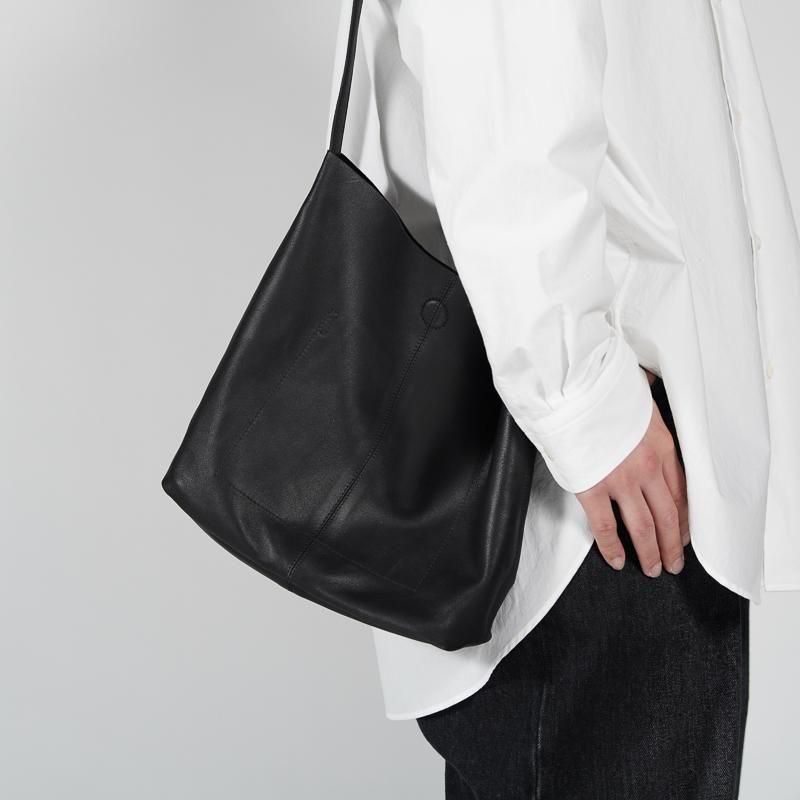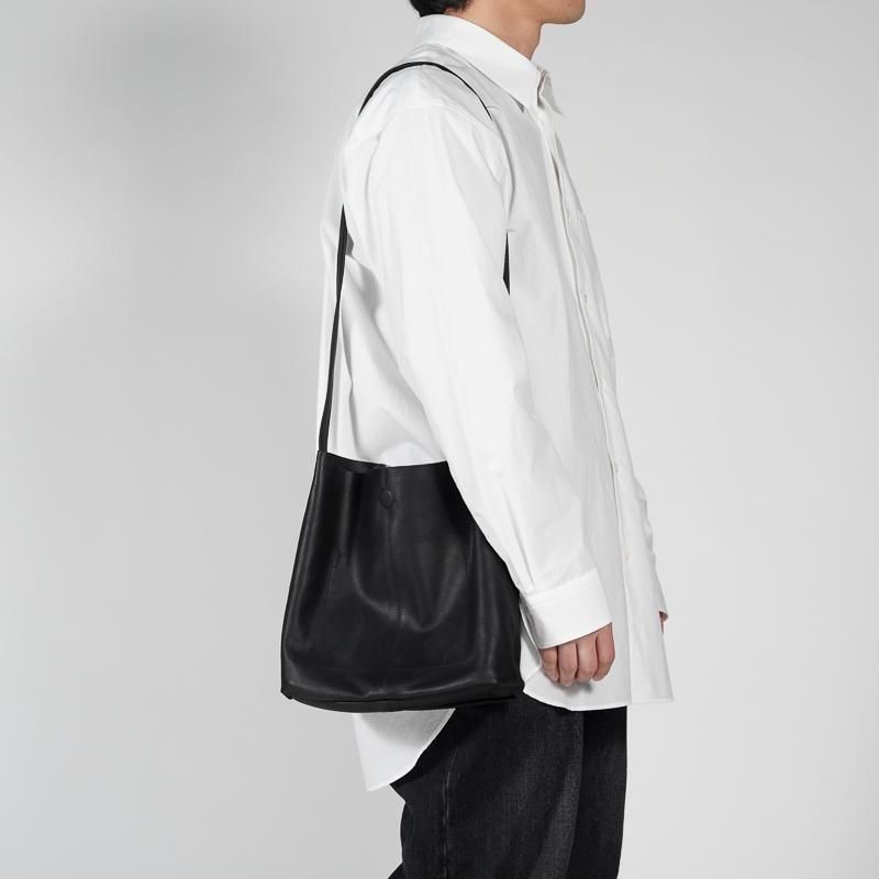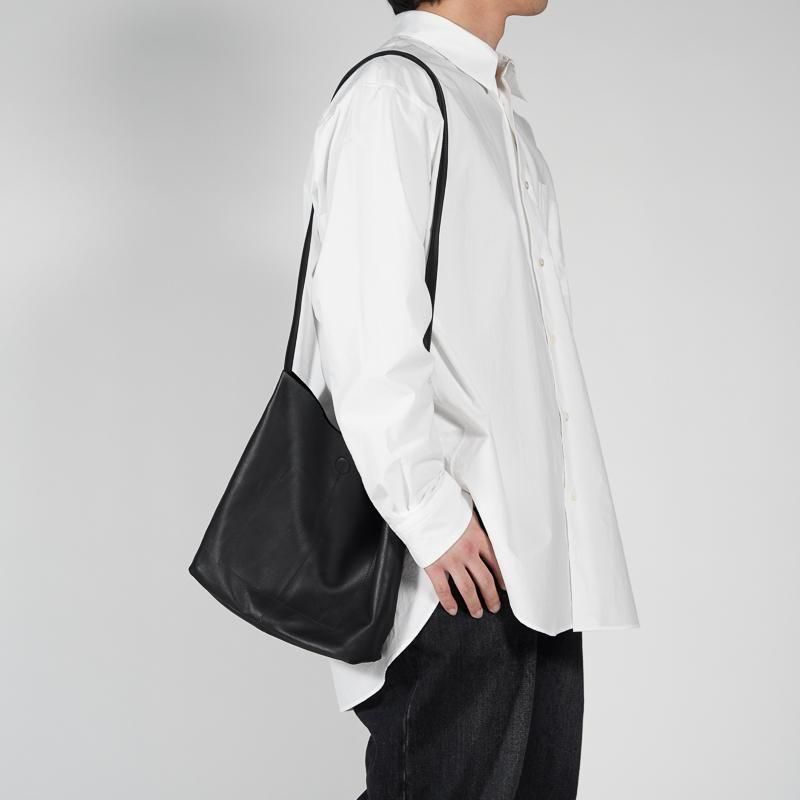 ソフトな質感と屈強性にも長けた基準の高いゴートレザーを用いた新型"SQUARE SHOULDER" 。「誰もが似合うデザイン」を目指して作られたバッグは非常に軽く、丈夫で型崩れしにくいのが最大の特徴。両面が均一になるようダブルフェイス加工が施されることで非常に軽やかな仕上がり。バッグの内側にはキーリングが付属しております。男女問わずご使用いただけるバッグです。