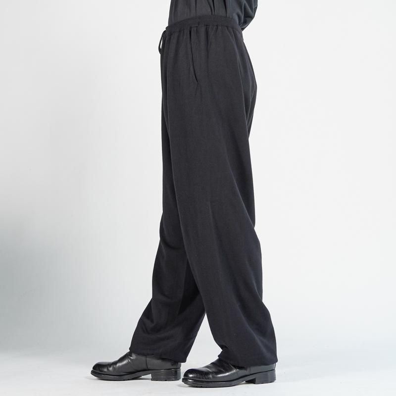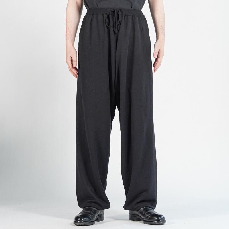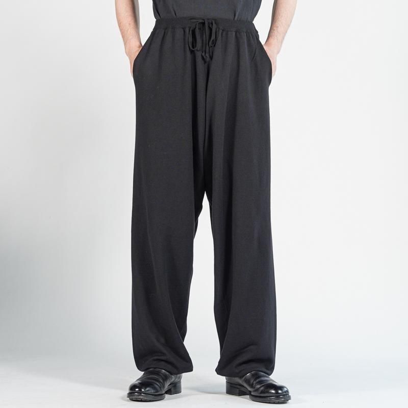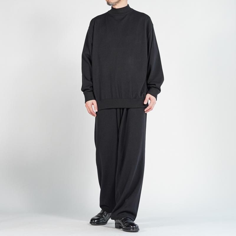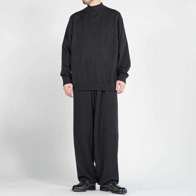 継続のウールニットシリーズ。度詰めの柔らかいウールニットですが、毛玉になりずらく、着ている感覚は、ニットとカットソーの中間のようで、とても汎用性が高いことが特徴です。同素材の上下であわせるイメージで作られて作られています。ニットならではの落ち感のあるフォルムで、裏毛とはまた異なる雰囲気で着こなすことができます。