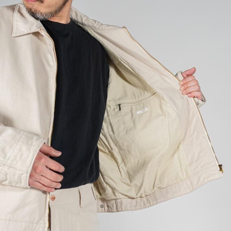 微起毛感のあるコットンツイルで作製されたジップショートジャケット。コットンネルの総裏で仕立てられており、上下黒のあわせの上から羽織ったり、同素材のボトムスとの着こなしを楽しめます。