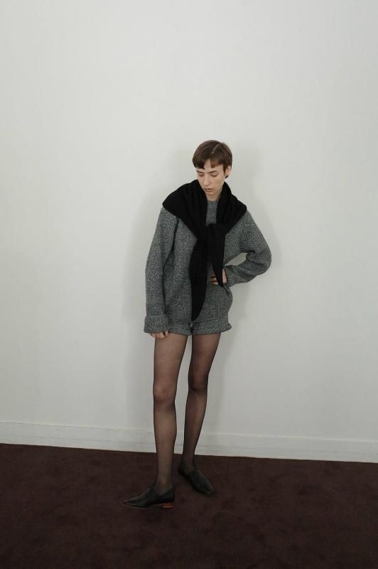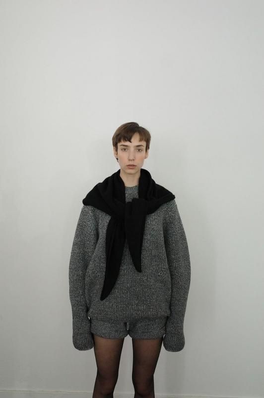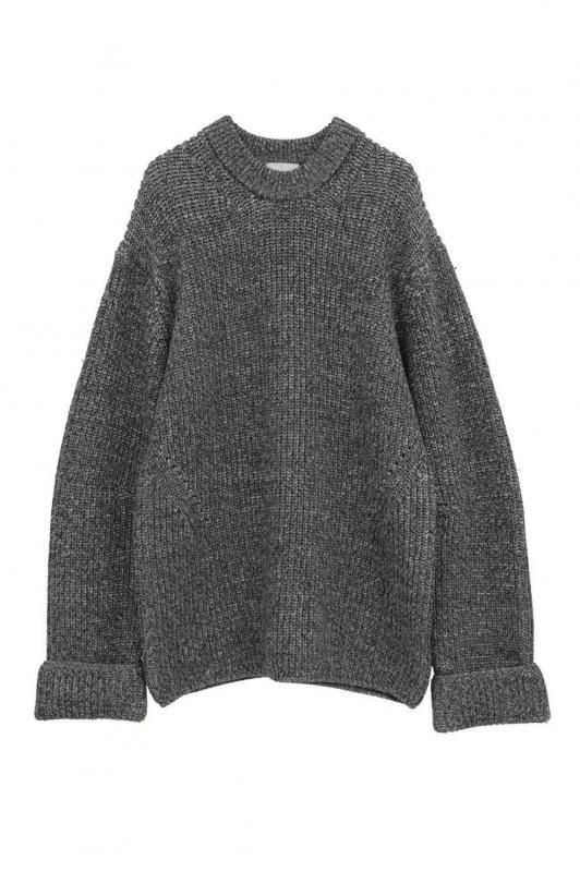 CLANEらしいオーバーなサイズ感と、構築的な袖のシルエットに拘った重厚感のある上品なニット。