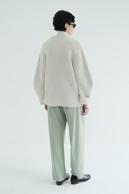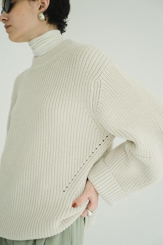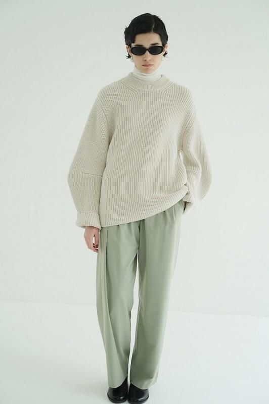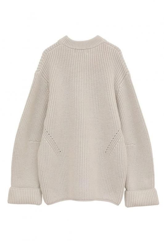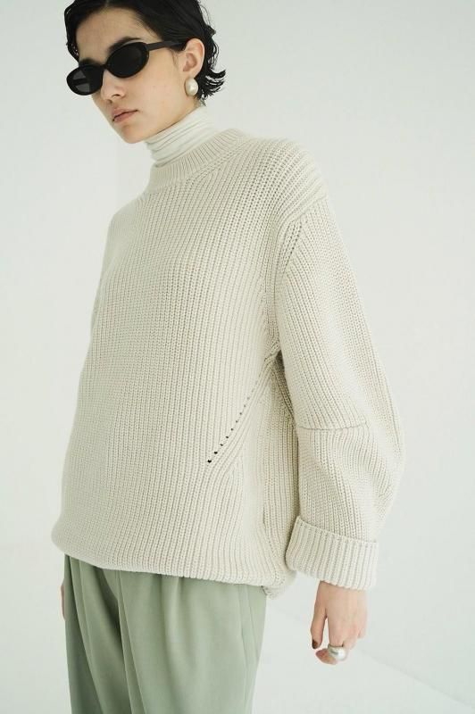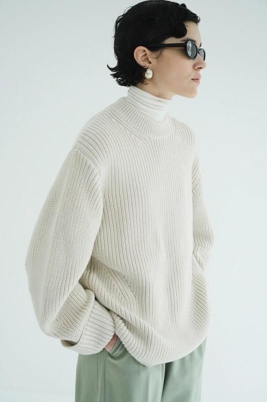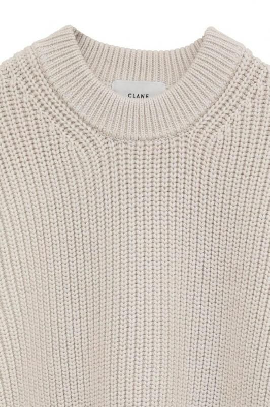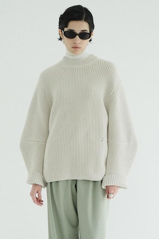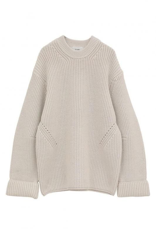 CLANEらしいオーバーなサイズ感と、構築的な袖のシルエットに拘った重厚感のある上品なニット。