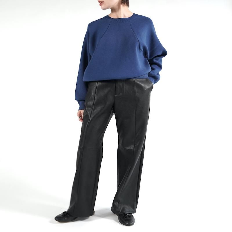 ■POINT:やや肉厚でハリのある総針編みで仕立てたニットトップス。