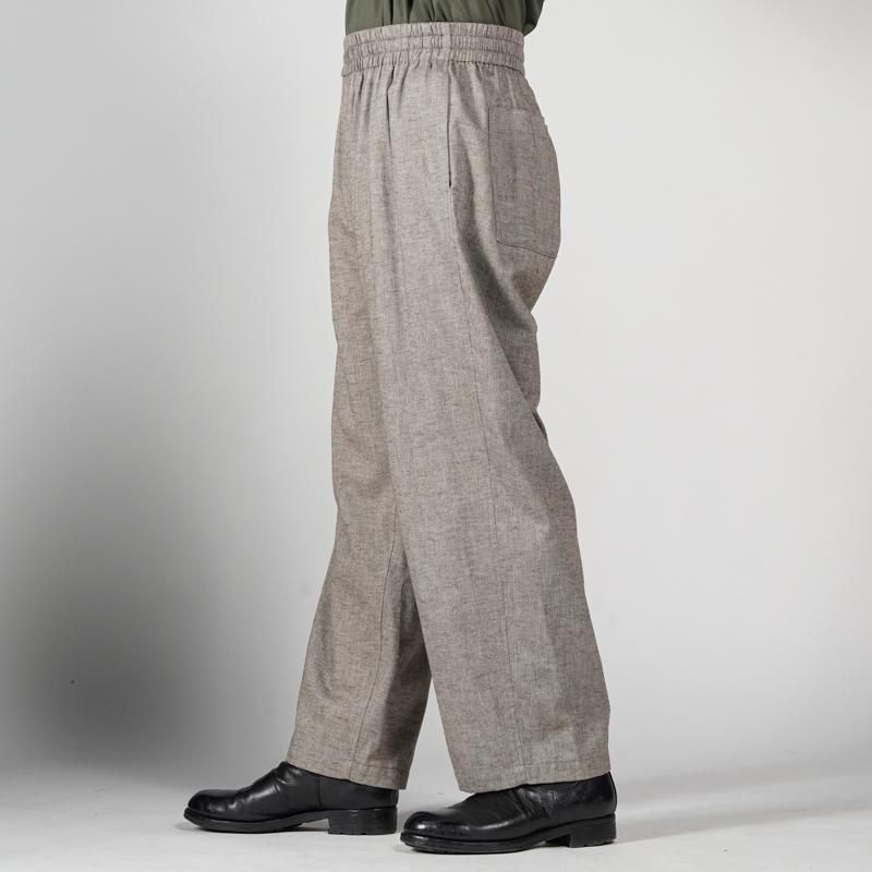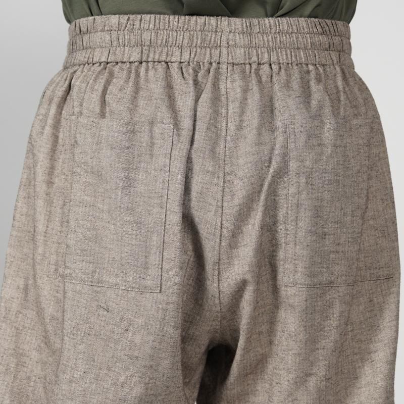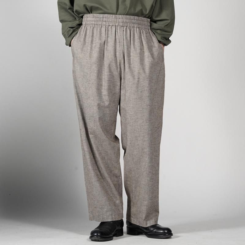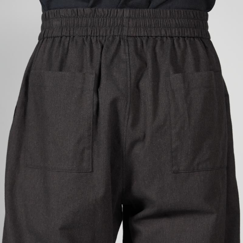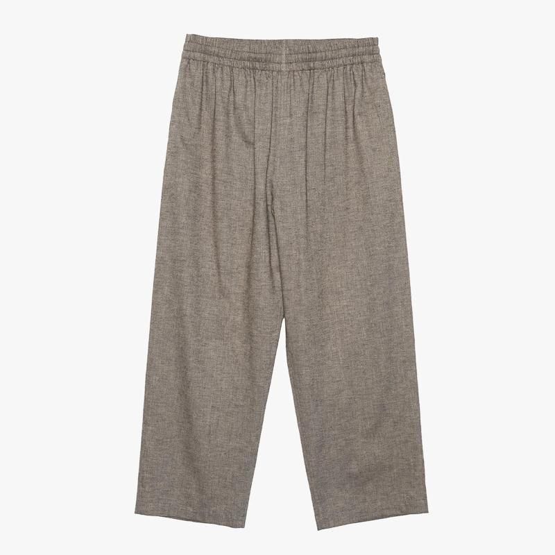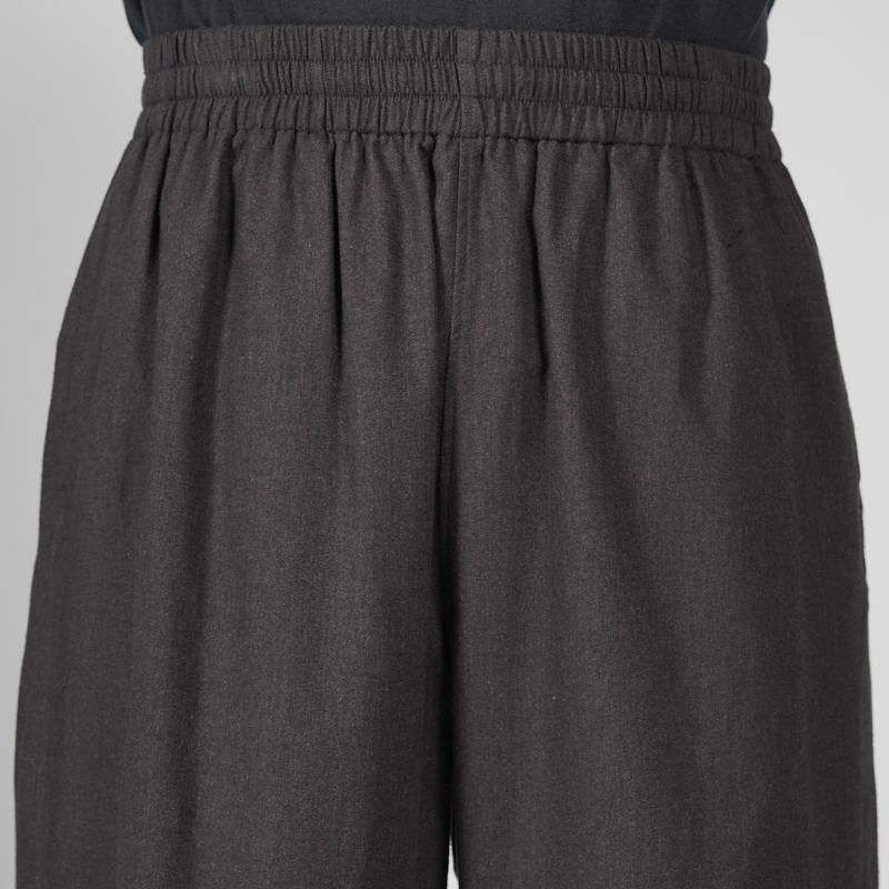 スペイン・バルセロナに拠点を持つSIDOGRAS(シドグラス)社の上質で繊細なコットンを用いたフランネルを使用。品のある柔らかい肌触りと温かみのある起毛感が魅力。ウエストゴムでシンプルなパターン構成のスリーピングパンツ。ゆとりのある腰回りで、裾にかけテーパードさせたリラックス感のあるシルエット。