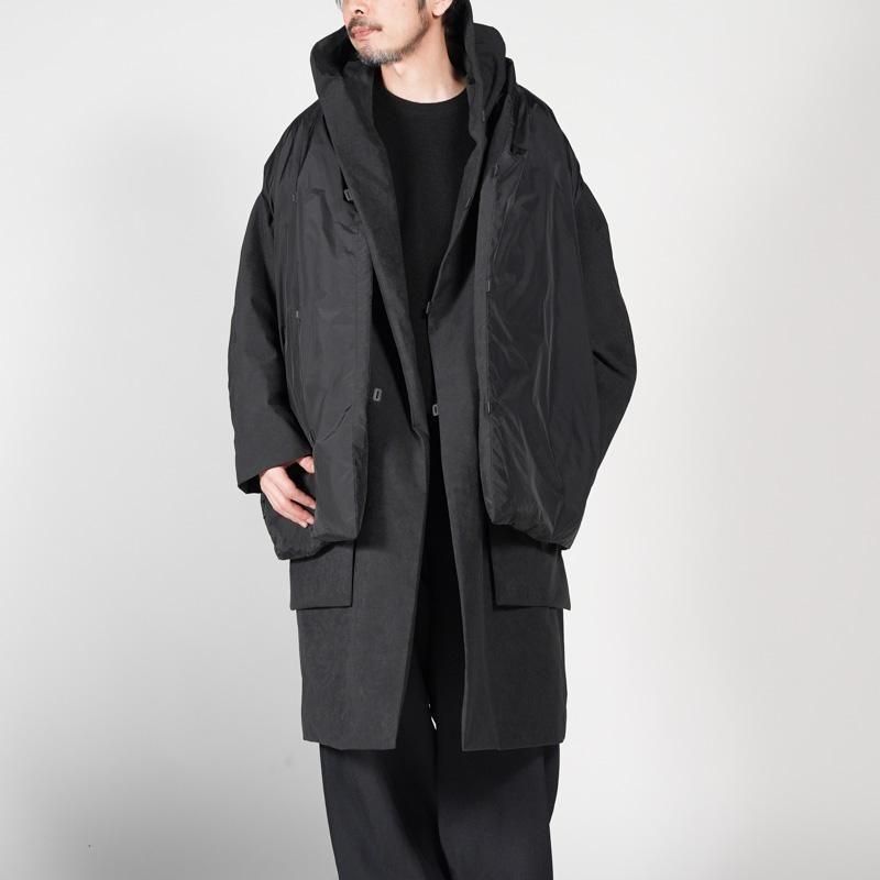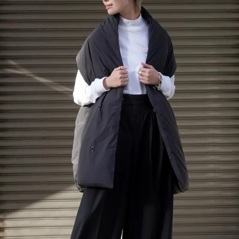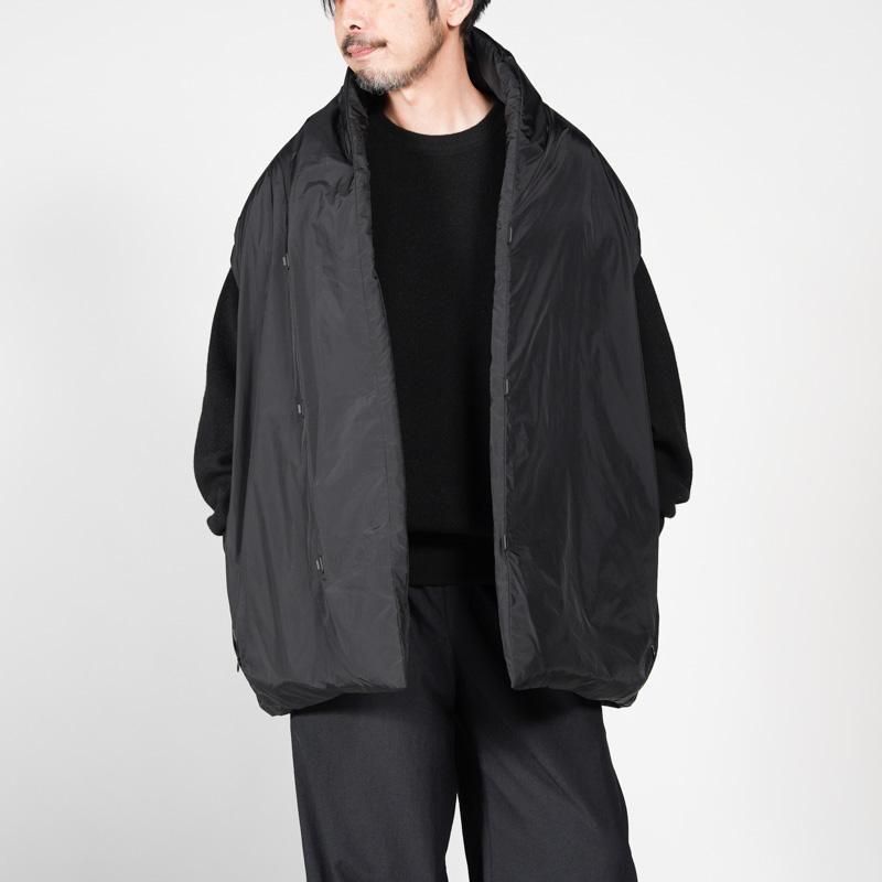 ベストとしてはもちろん、ショールやガウンのようなリラックスした印象を与えます。上着の上からは勿論、DEVICE COATやSOUVENIR HUNTERといった分量のあるアウターのインナーとしてもお使い頂けます。両サイドに大容量ポケット、ポケット内部にはセキュリティポケットも配されました。オリジナリティ溢れるフォルムも魅力的。秋から春先まで様々なシーンで着回して頂けます。