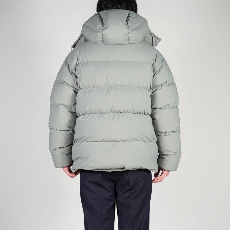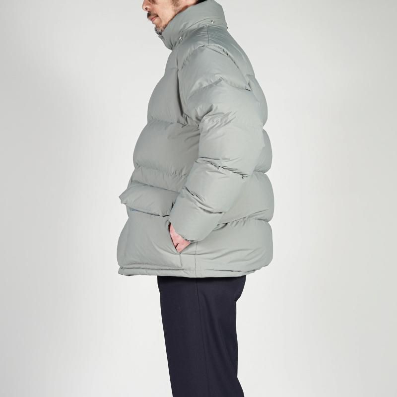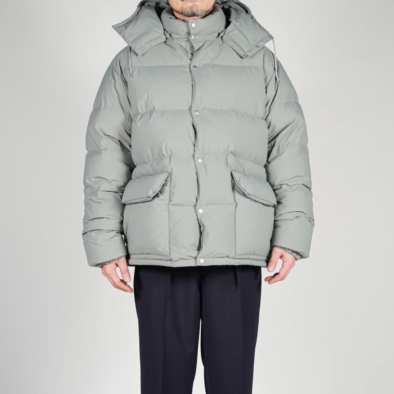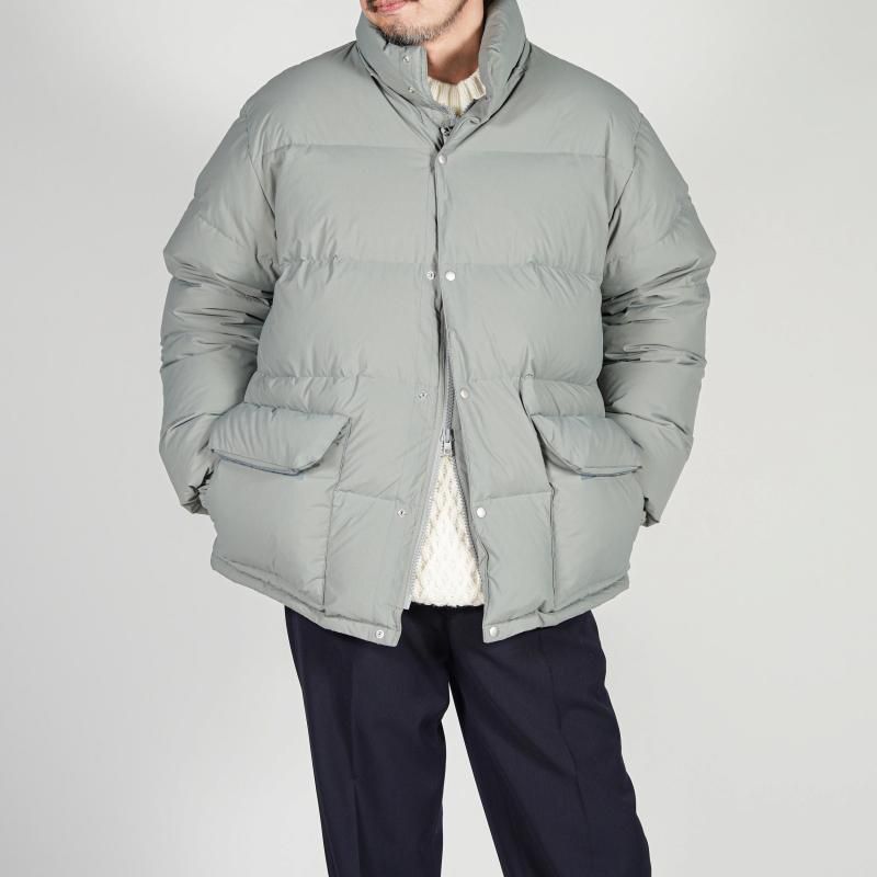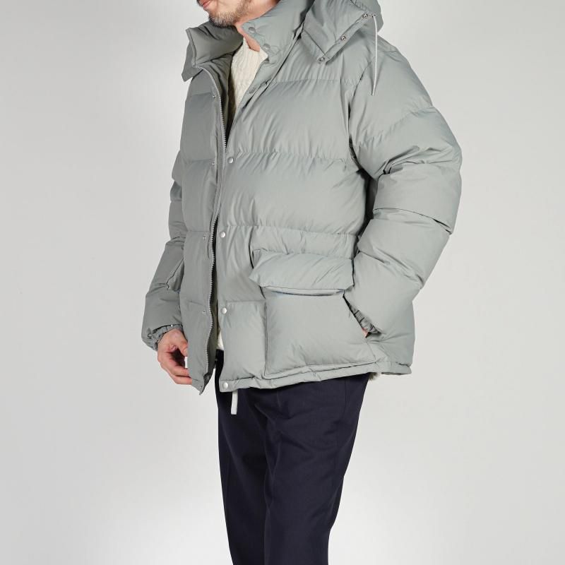 素材には国内繊維メーカーと開発したオリジナルナイロンを採用。ワッシャー加工によるシワ感がコットンライクな風合いを生み出し、独特なドライタッチとレトロな表情をまとわせています。ボリューム感あるフォルムと豊富なダウン量により、寒冷地での機能性はもちろん都市生活にも自然に馴染む、ダウンジャケットが完成しました。